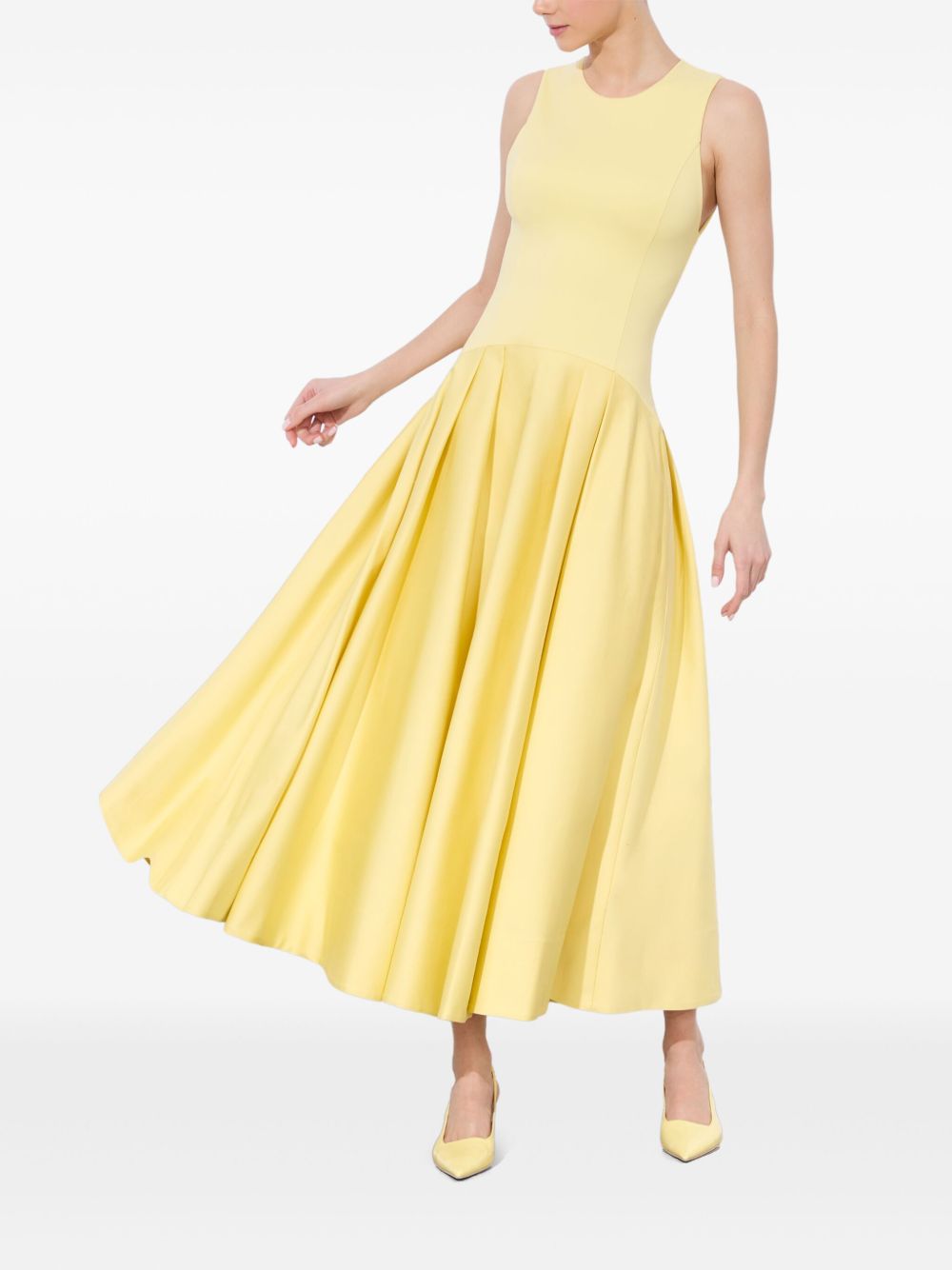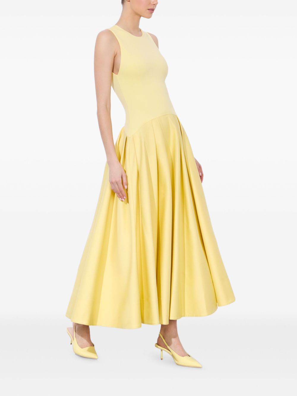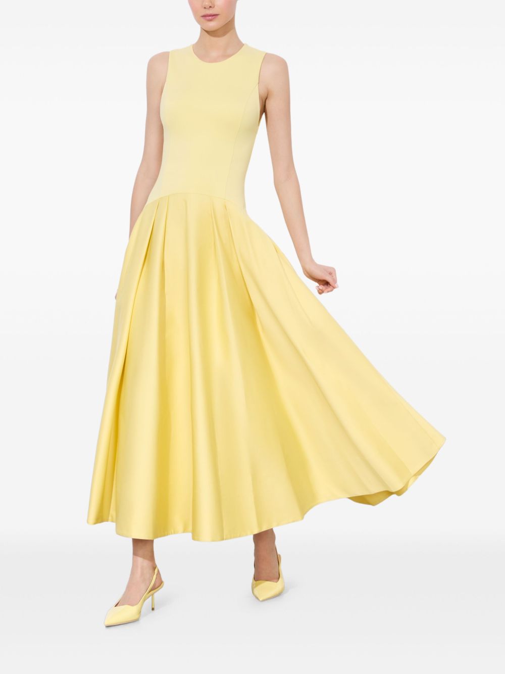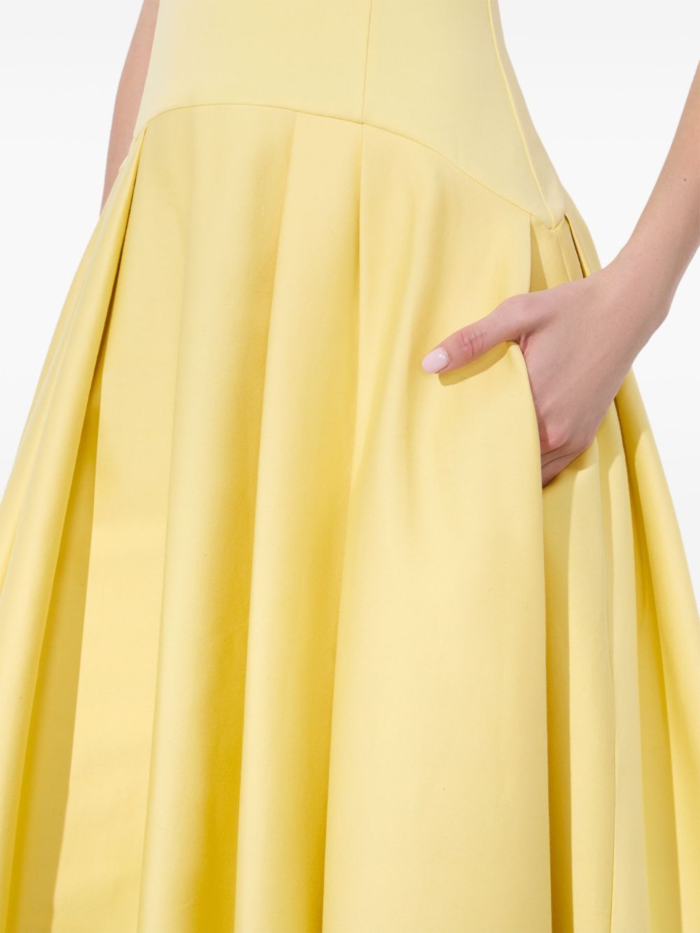 Robe longue Adley en coton, col ras du cou, jupe ample sans manches, fermeture éclair apparente au dos, jaune clair. Taille et coupe : Ce modèle taille normalement. Nous vous recommandons de prendre votre taille habituelle. Le mannequin mesure 1,75 m et porte une taille 4 (US).