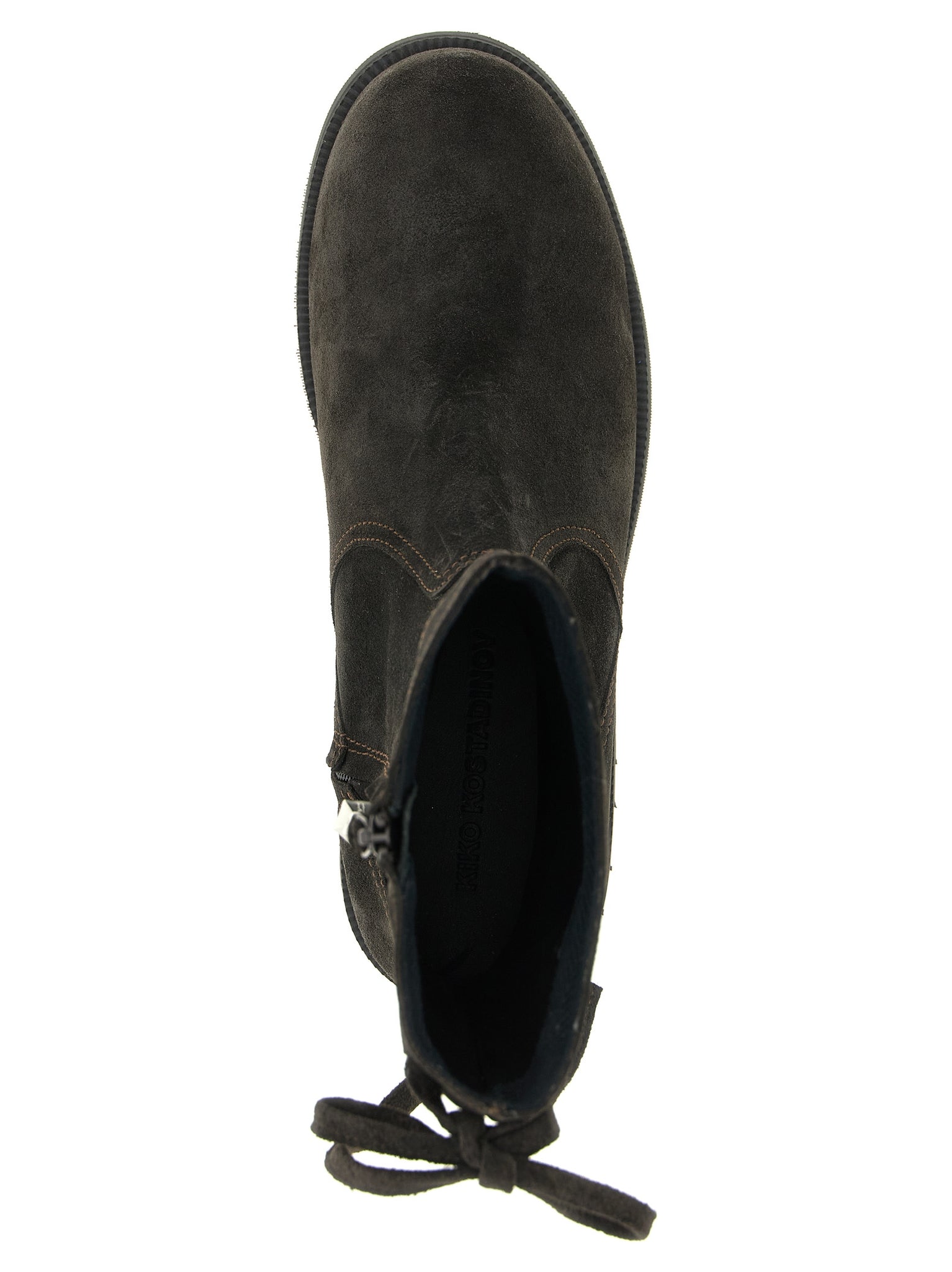 'Farkas' suede ankle boots, leather lining with grosgrain ribbon finish, rounded toe, logo embroidery and side zip closure, back laces, Vibram® rubber sole. Size and Fit - EU MEN