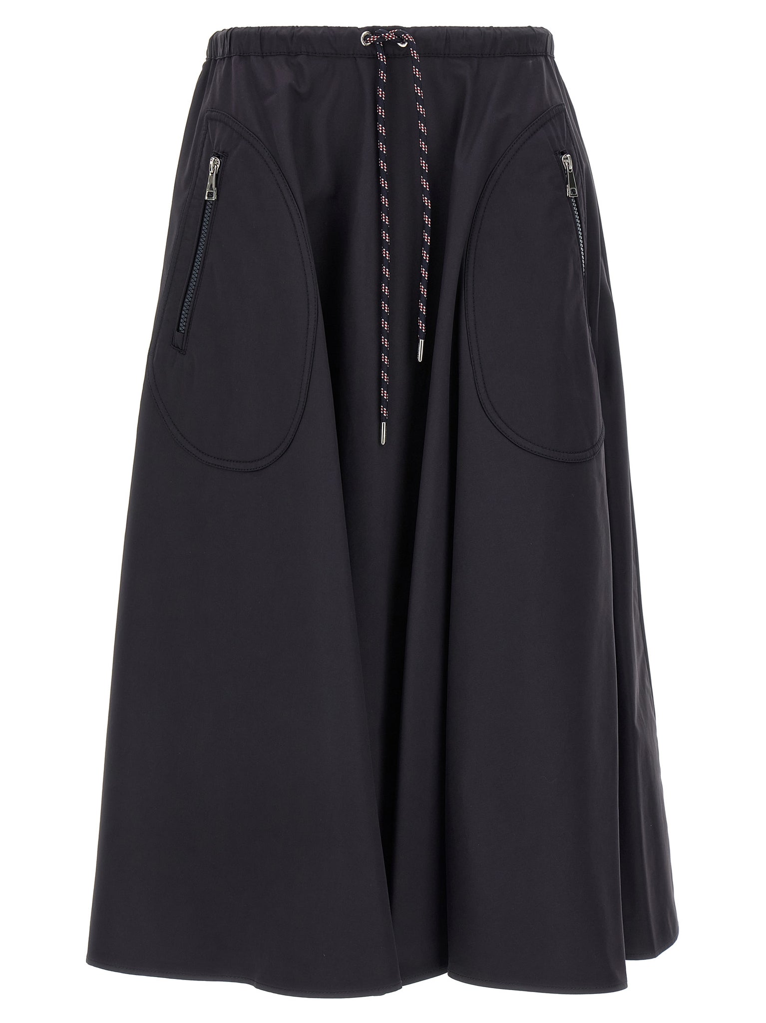 Full skirt in cotton and nylon blend, flared silhouette, back felt logo patch, drawstring elastic waistband, pockets, unlined. Size and Fit - true to size fit