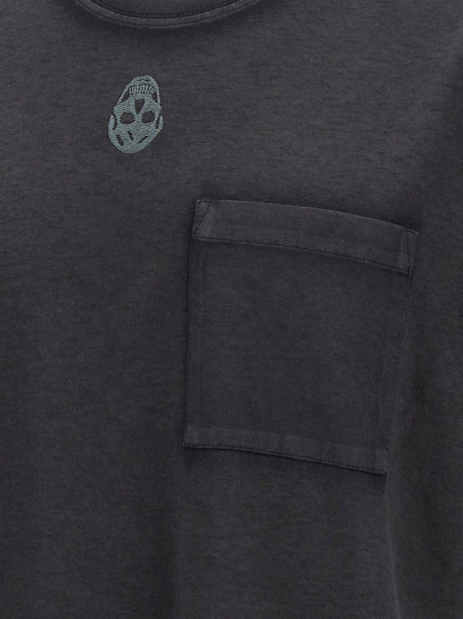 Discover a bleached overdyed cotton jersey tee that balances signature style with everyday wearability. The front skull embroidery and breast pocket add defining detail while the crew neck and dropped-shoulder short sleeves keep the fit relaxed and true to size. This Alexander McQueen piece pairs easily with denim or tailored trousers for versatile styling.