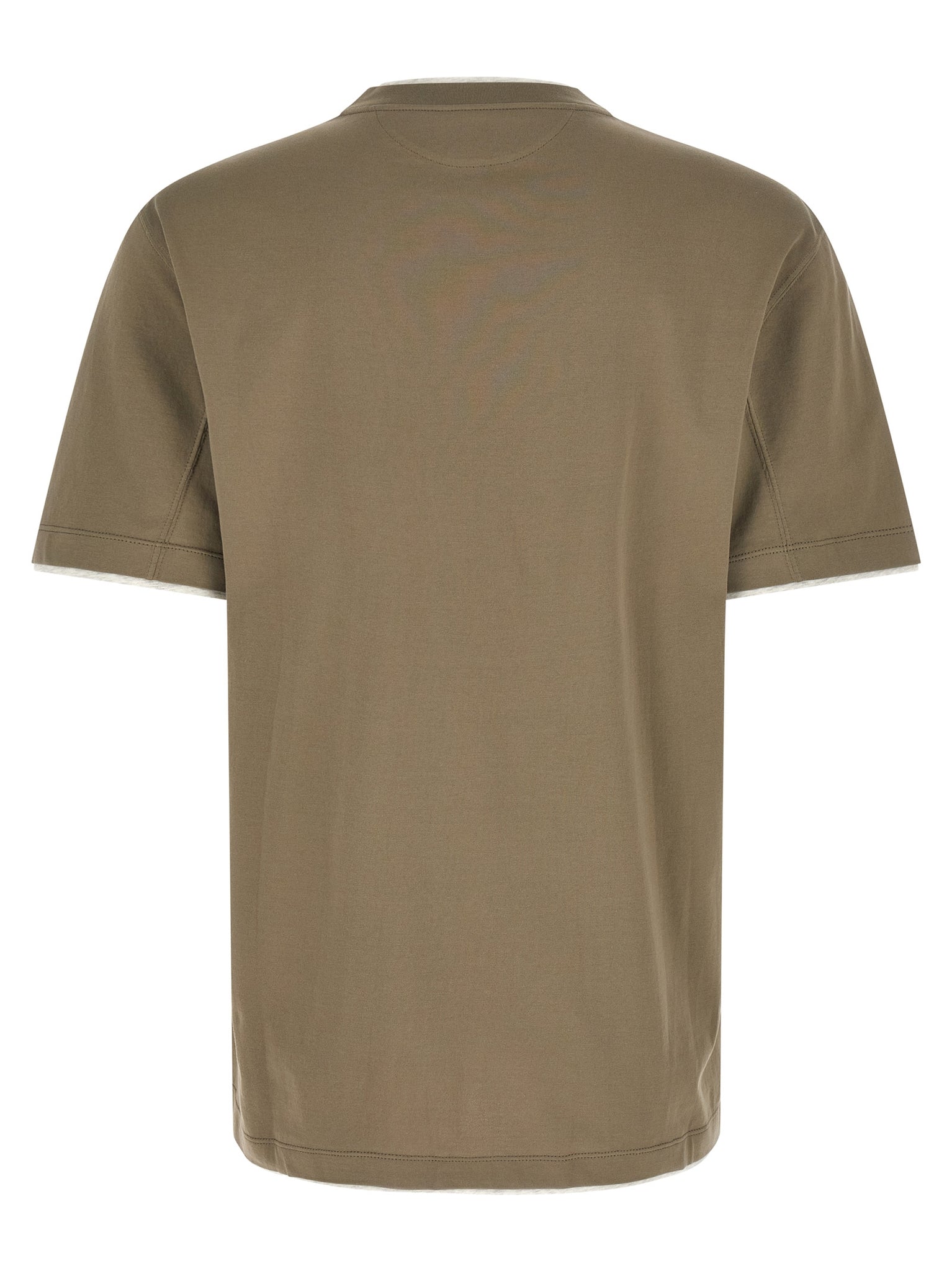 The Brunello Cucinelli Double Layer T-shirt in green offers a refined cotton build that layers subtly for added structure while maintaining breathability. Its crew neck and short sleeves provide a clean silhouette that suits everyday wear, and the double layer piping enhances durability at key seams. Size and fit run true to size for straightforward selection.