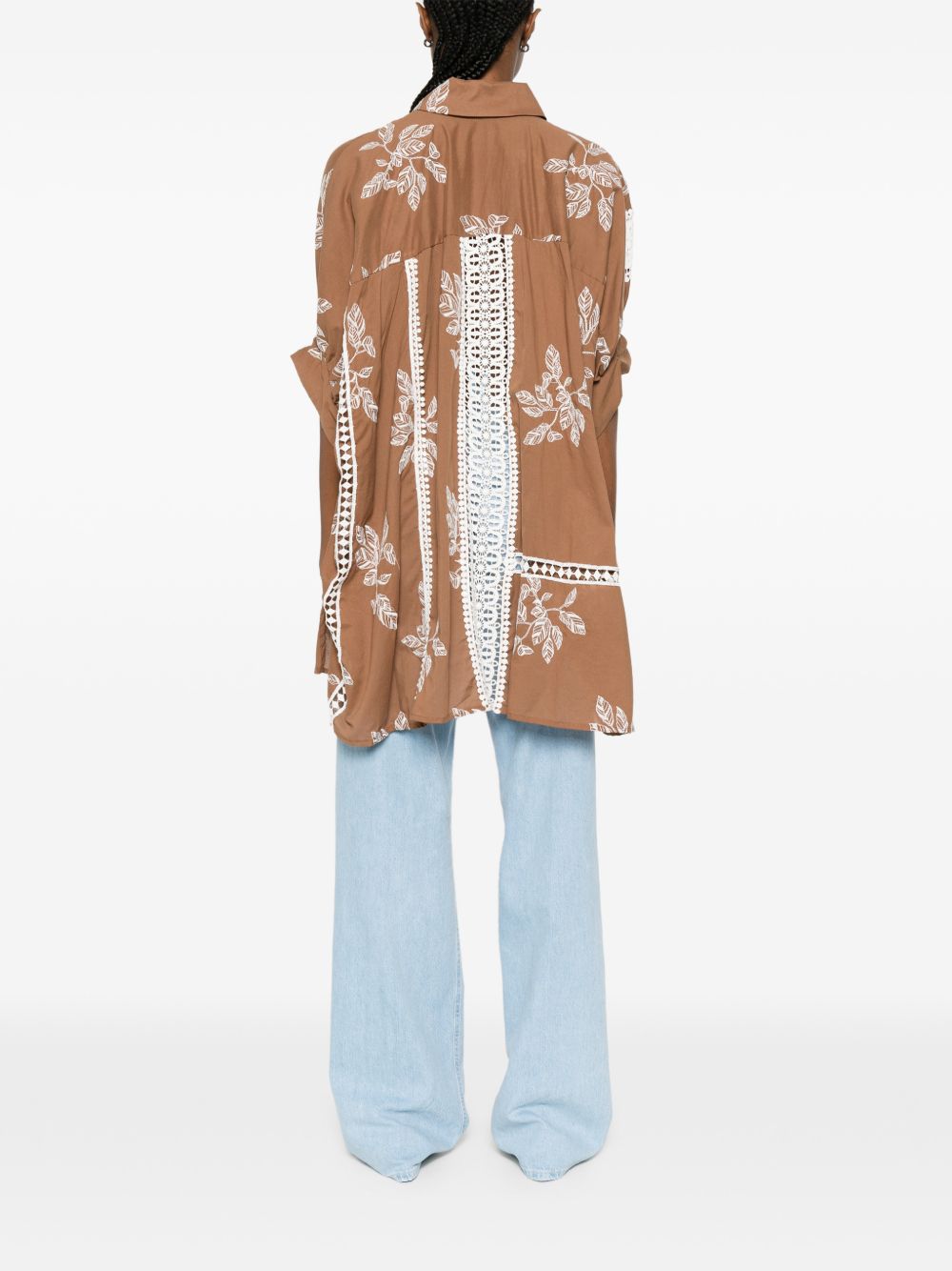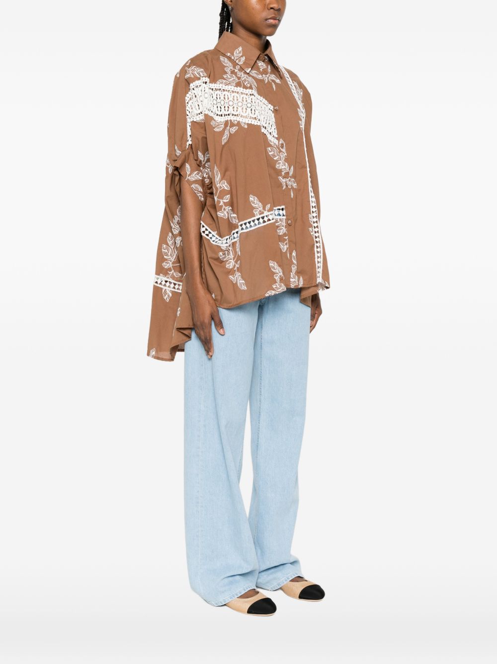 brown floral print lace detail tiered design button fastening shirt collar Printed cotton shirt