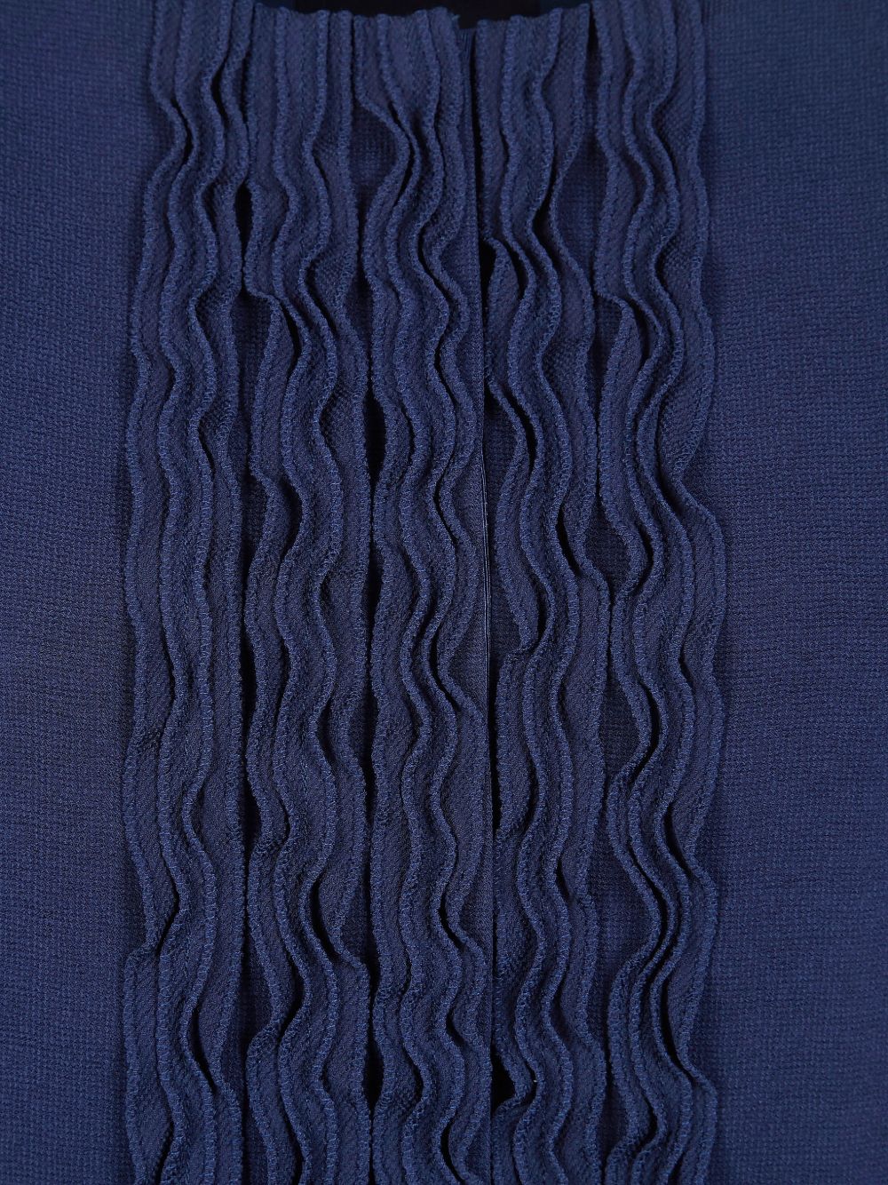 blue ruffled detailing long sleeves round neck fitted silhouette concealed fastening