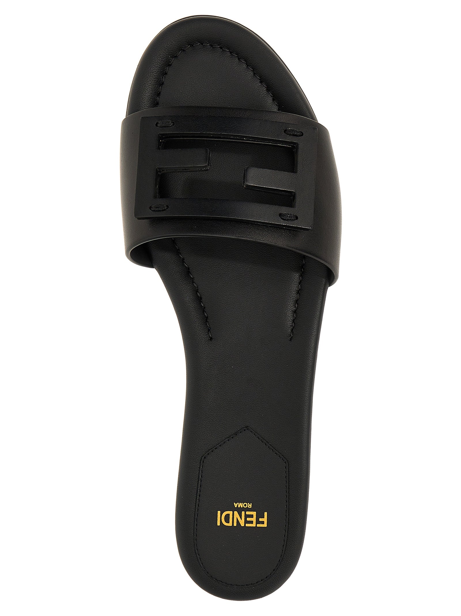 Baguette' leather sandals with ff front logo, Flat model with leather sole. Size and Fit - EU WOMANMade in: Italy