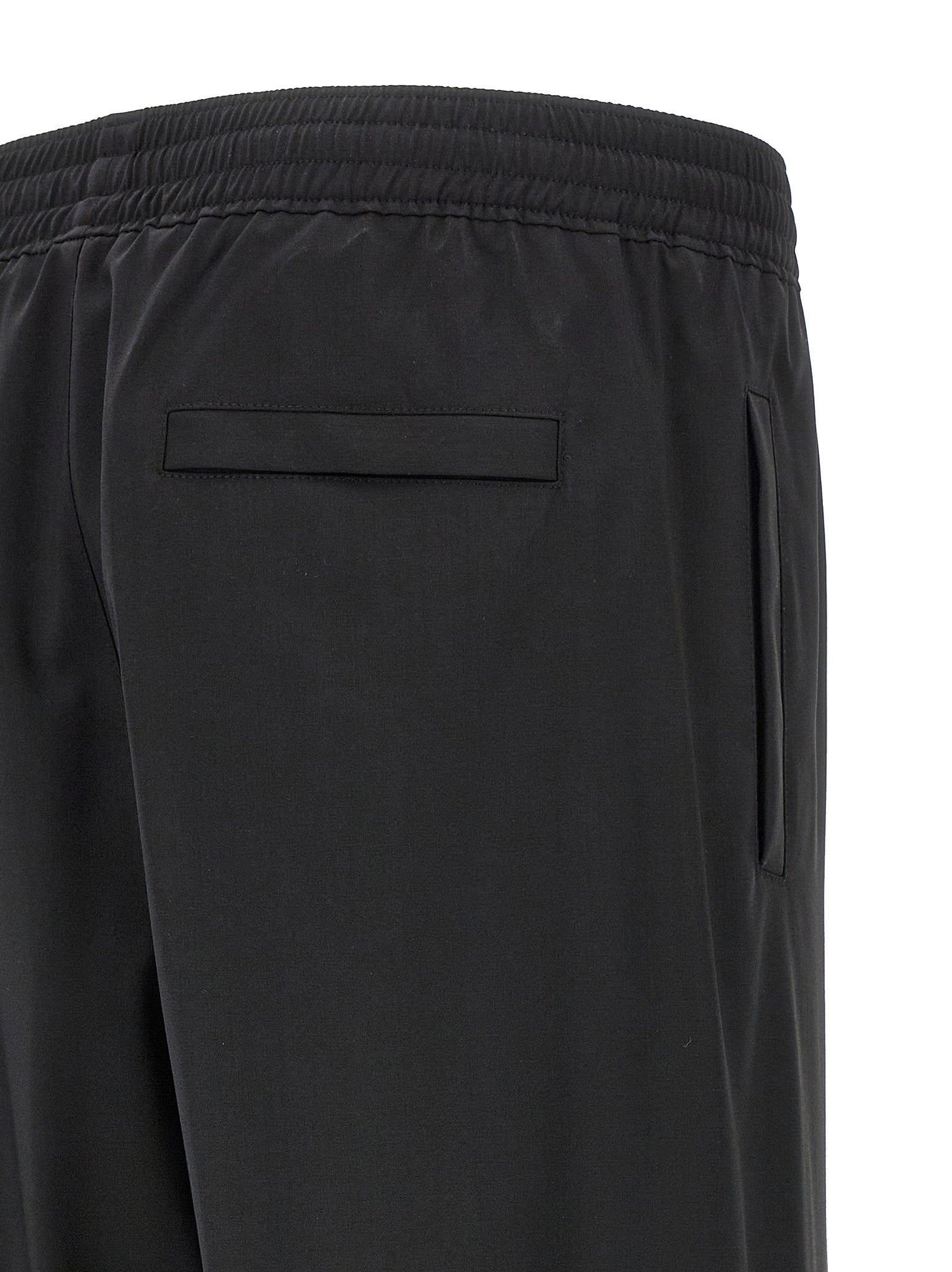 Wool trousers, tone-on-tone front logo veneer, elastic and drawstring at the waist, pockets, elastic ankle cuffs. Size and Fit - true to size fit