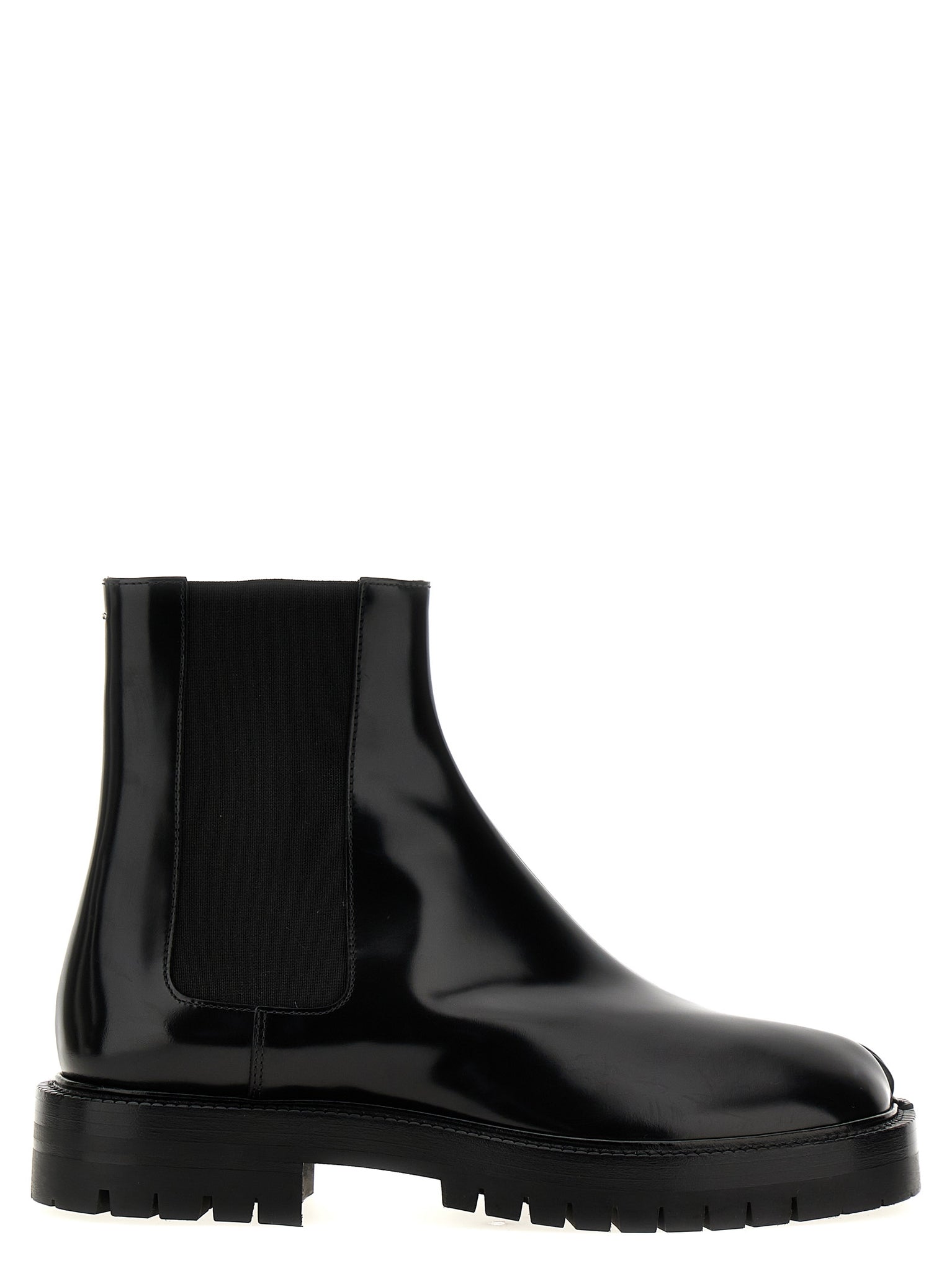 'Tabi' brushed leather Chelsea boots with side elastics and a thick notched rubber sole. Size and Fit - EU MEN