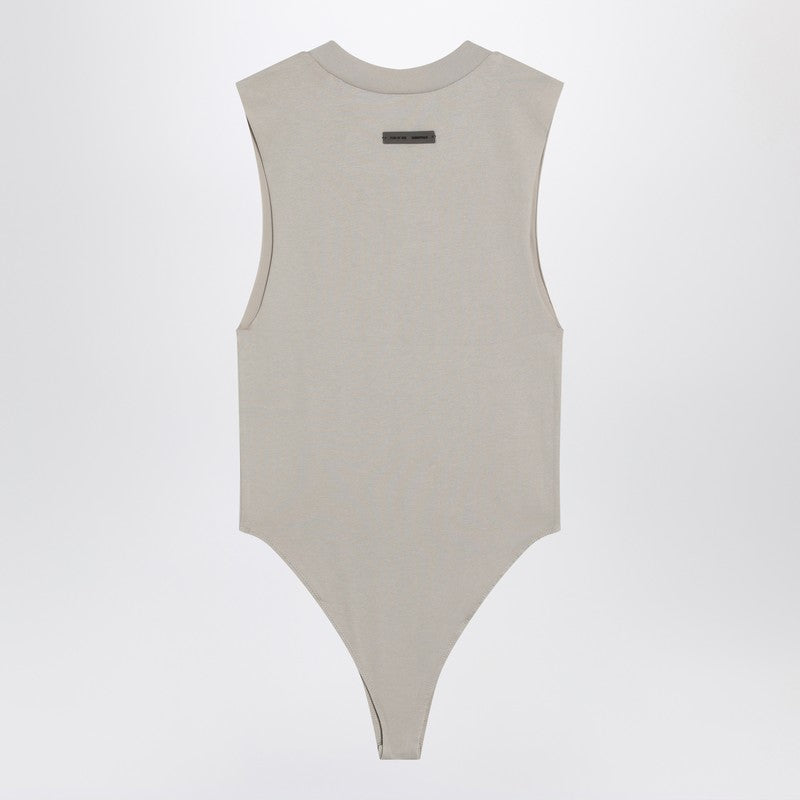Body sans manches de Fear Of God Essentials en mélange de coton grège, avec col ras du cou côtelé, patch logo sur le devant et le dos, emmanchures larges et fermeture à pression à l'entrejambe.