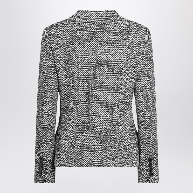 Veste Dolce & Gabbana en laine mélangée grise et noire à motif à pois, dotée de larges revers, d'une fermeture croisée sur le devant, de deux poches à rabat et de manches longues à poignets boutonnés. Taille et coupe : Le mannequin porte une taille 42 IT. Mensurations : Taille : 178 cm, Poitrine : 83 cm, Taille : 63 cm, Hanches : 91 cm.