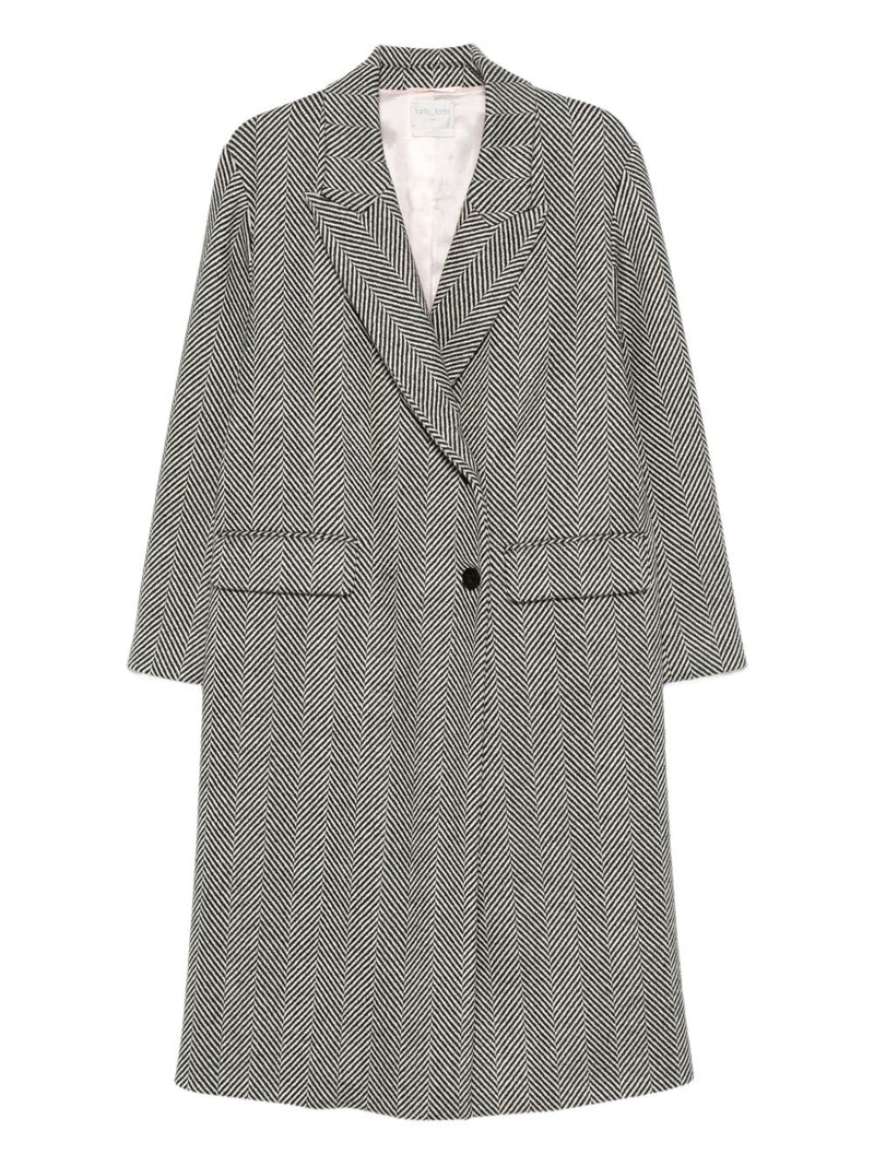 The Forte Forte Grey Wool Coat blends refined tailoring with everyday comfort. Its black herringbone pattern adds subtle texture, while the double-breasted fastening ensures a structured silhouette. Peak lapels and front flap pockets complete the timeless design, offering both style and practicality for the Fall season. Expertly crafted in soft wool, this coat reflects Forte Forte’s dedication to quality.