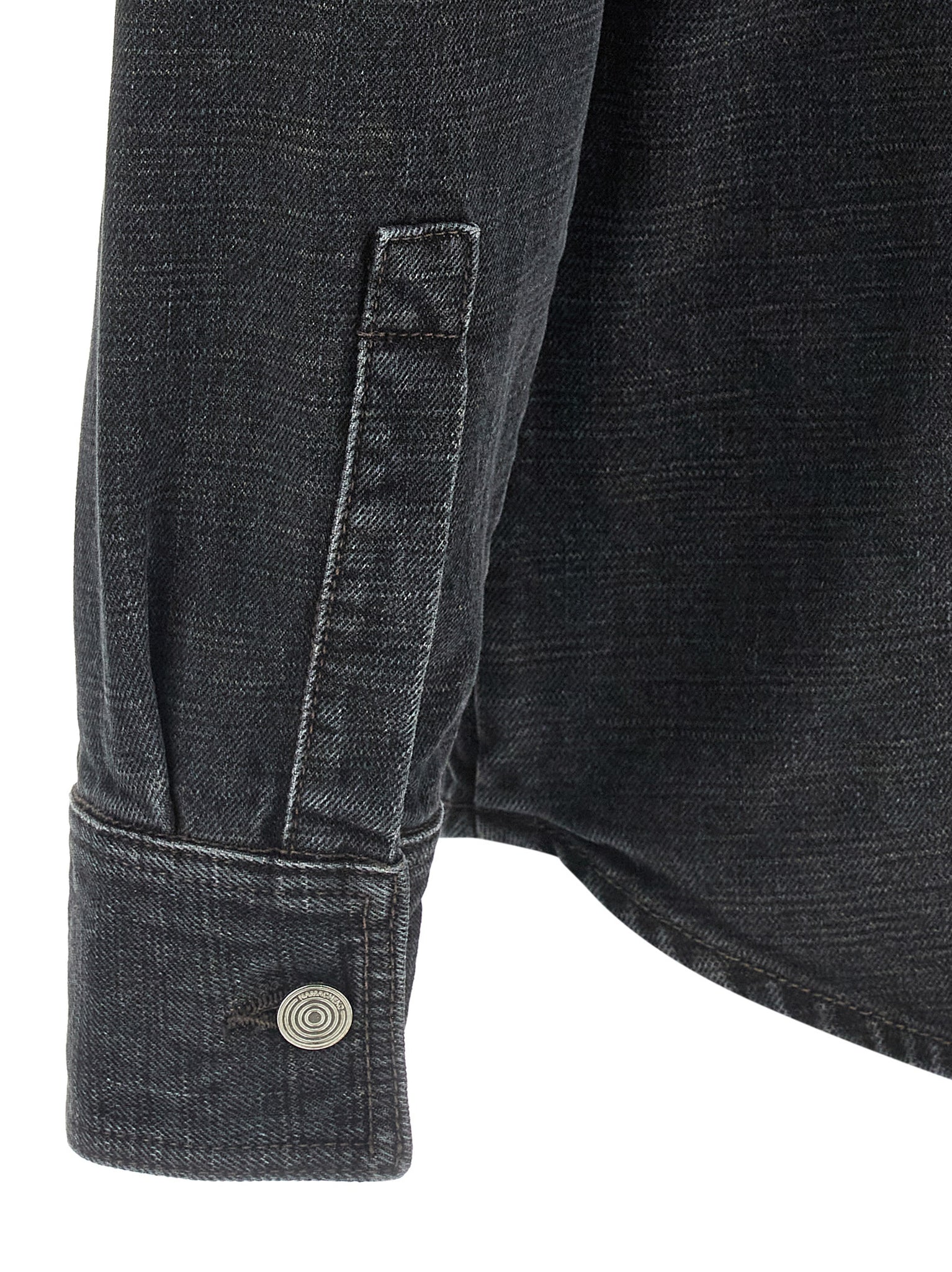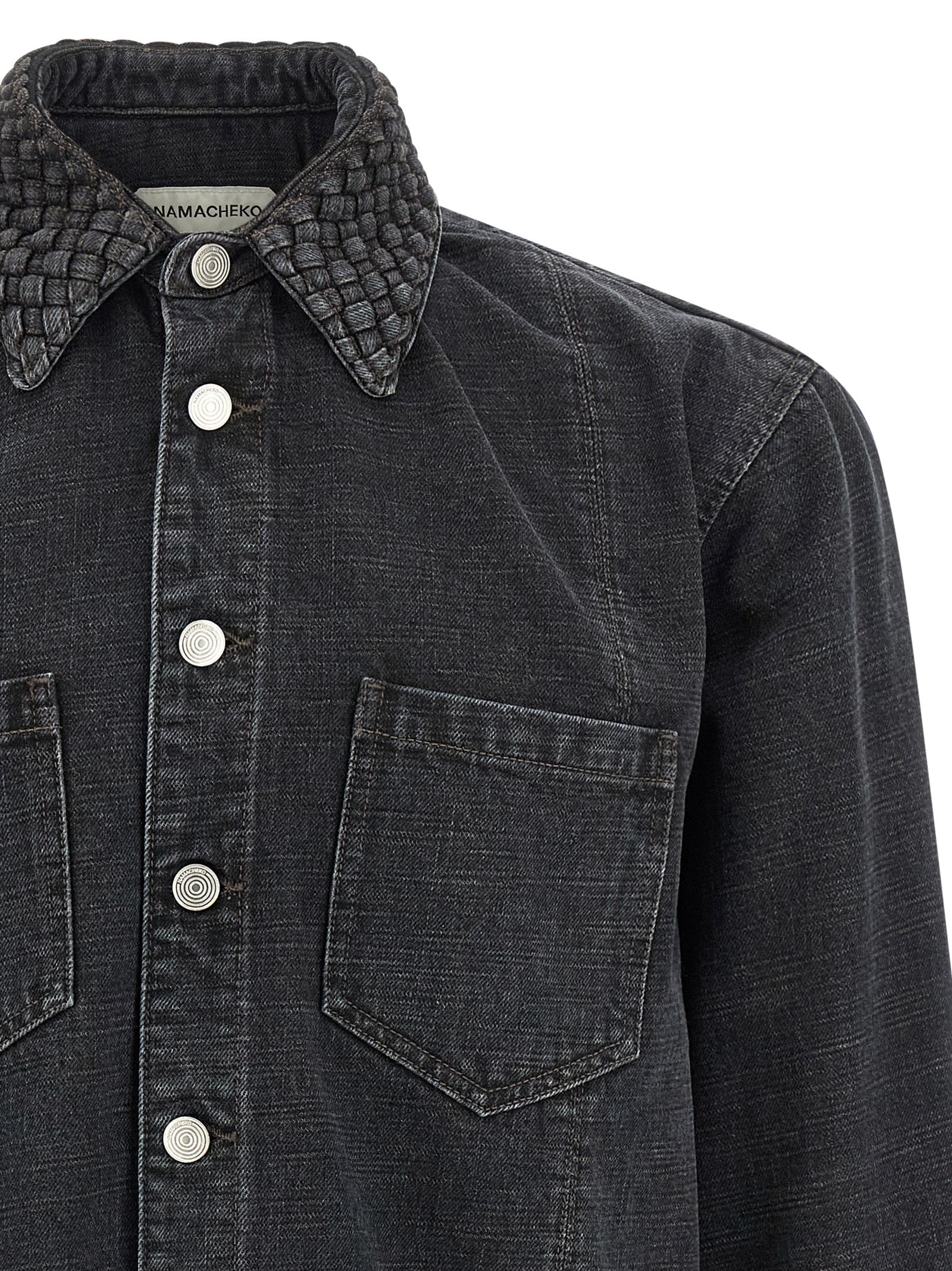 'gervis braided' denim shirt made of flamed yarn woven like a canvas and stone washed with streaked effect, Braided collar, Pockets, Front button closure, Long sleeves with cuffs and dropped shoulder. Size and Fit - true to size fit