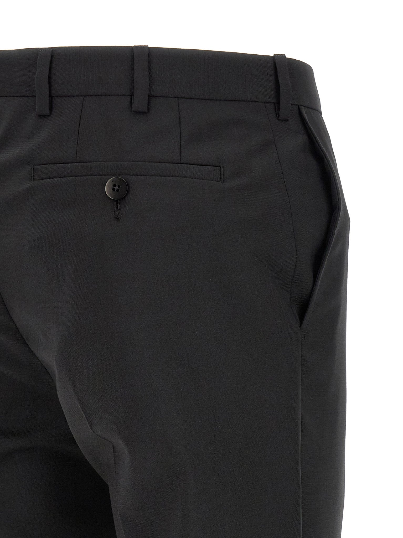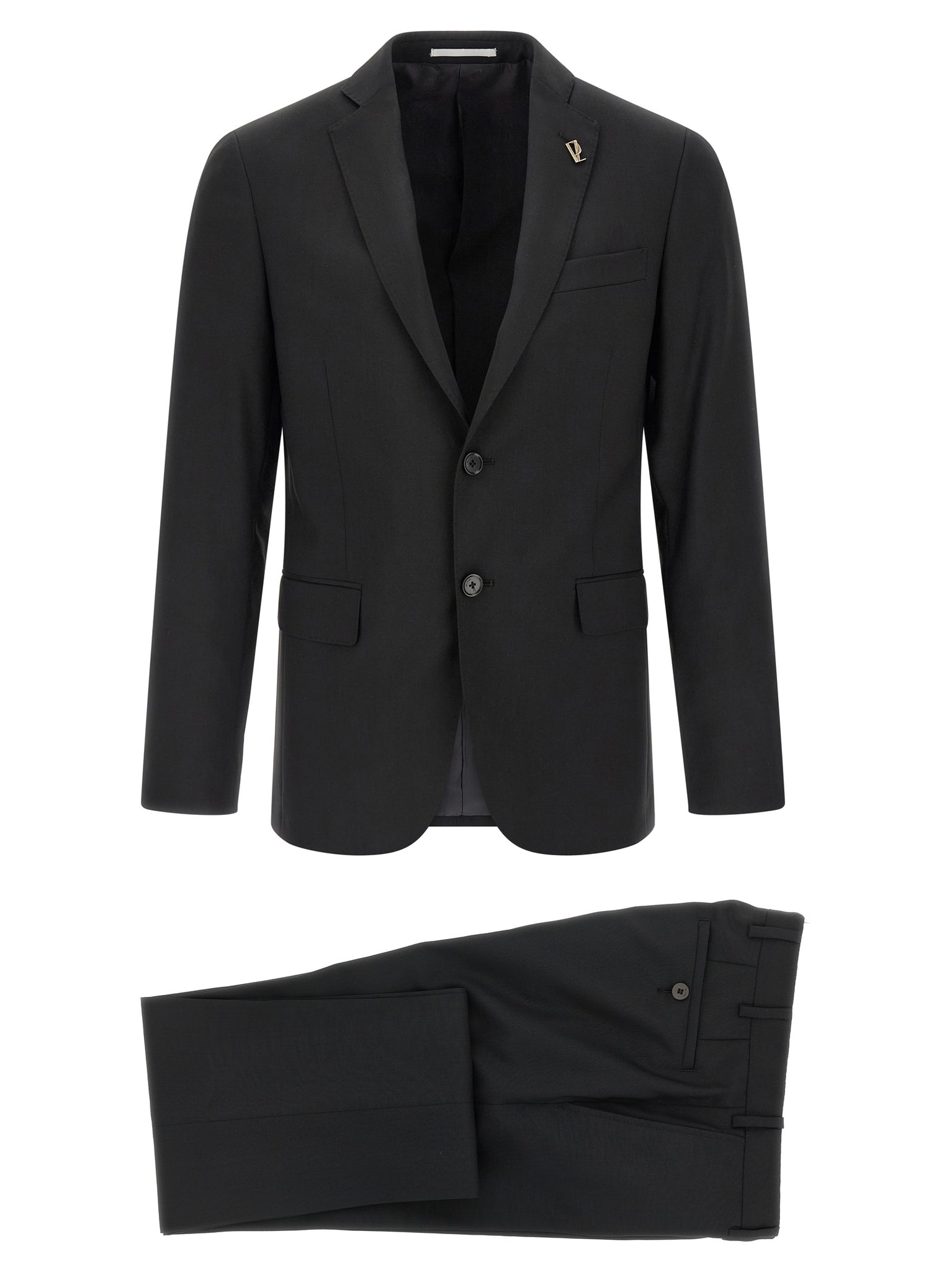 'lord' wool dress consisting of single-breasted blazer with front button closure, Mirror lapels with removable metal brooch, Chest pocket, Flap pockets, Cupro lining, Two inner pockets, Structured shoulder strap, Cuffs with opening buttonholes, Back slits and trousers with stretched crease, Front 'americane pockets', Back welt pockets, Front zip and button closure, Viscose lining. Size and Fit - true to size fit - DROP 7