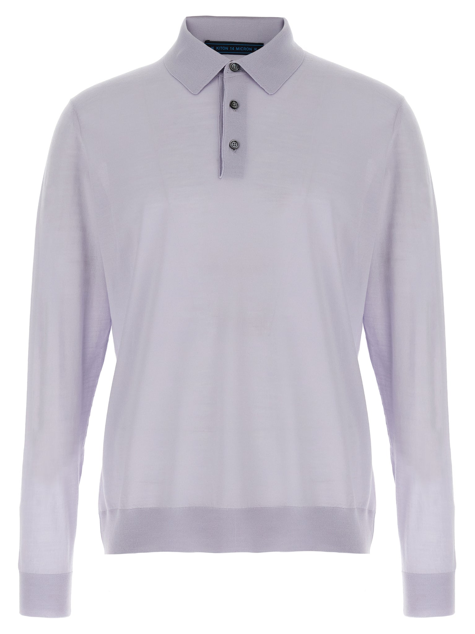 'Ciro' polo shirt in 14 micron fineness stretch wool, collar and buttons, long cuffed sleeves. Size and Fit - true to size fit
