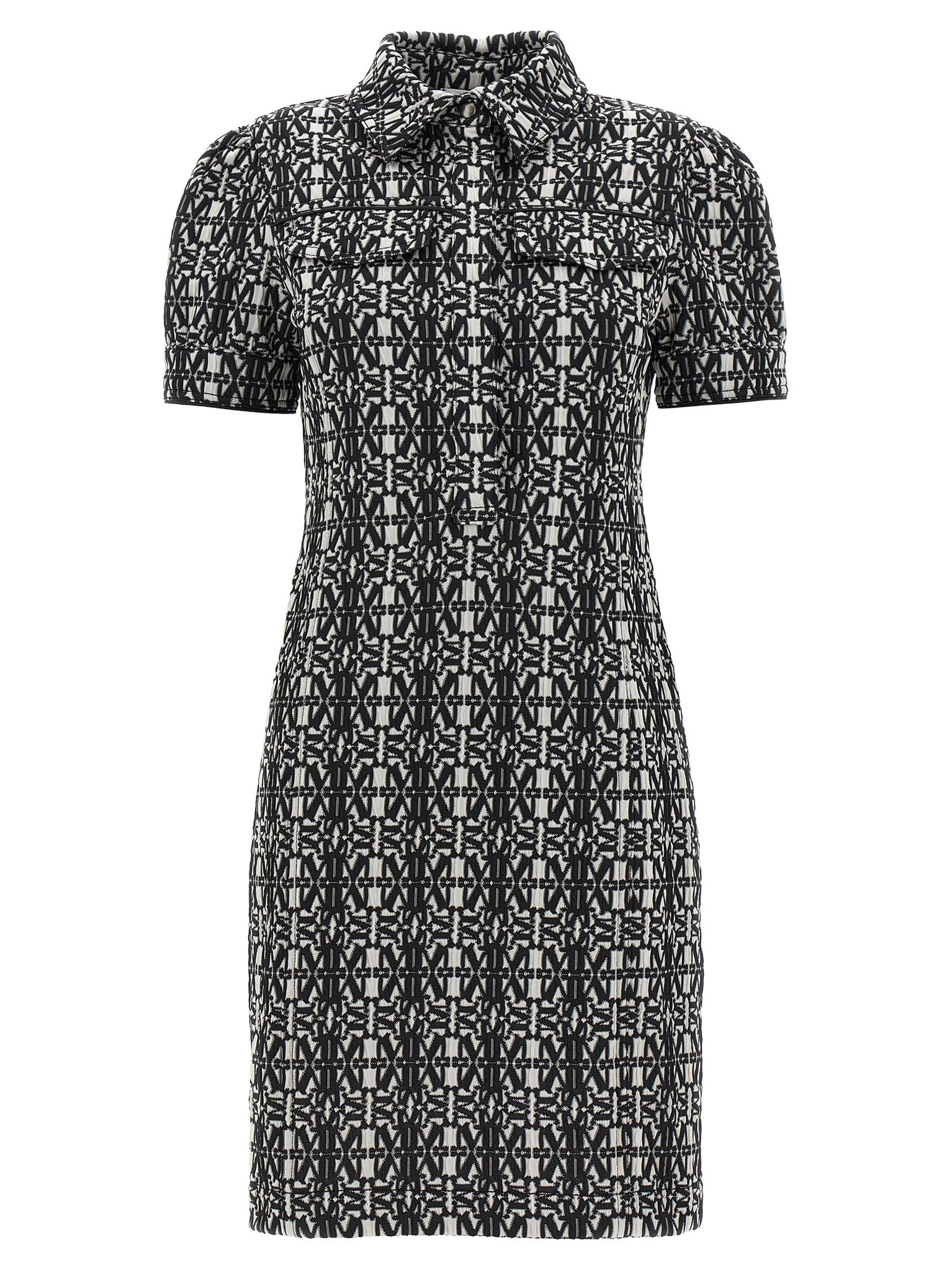 Discover a tailored short-sleeve jersey dress featuring an all-over jacquard logo that elevates everyday wear. The collar with button front and practical front pockets combine polish with functionality, while the true-to-size cut offers a confident fit. Designed for adult women in a White/Black palette, this Max Mara piece suits polished casual and refined daytime looks.