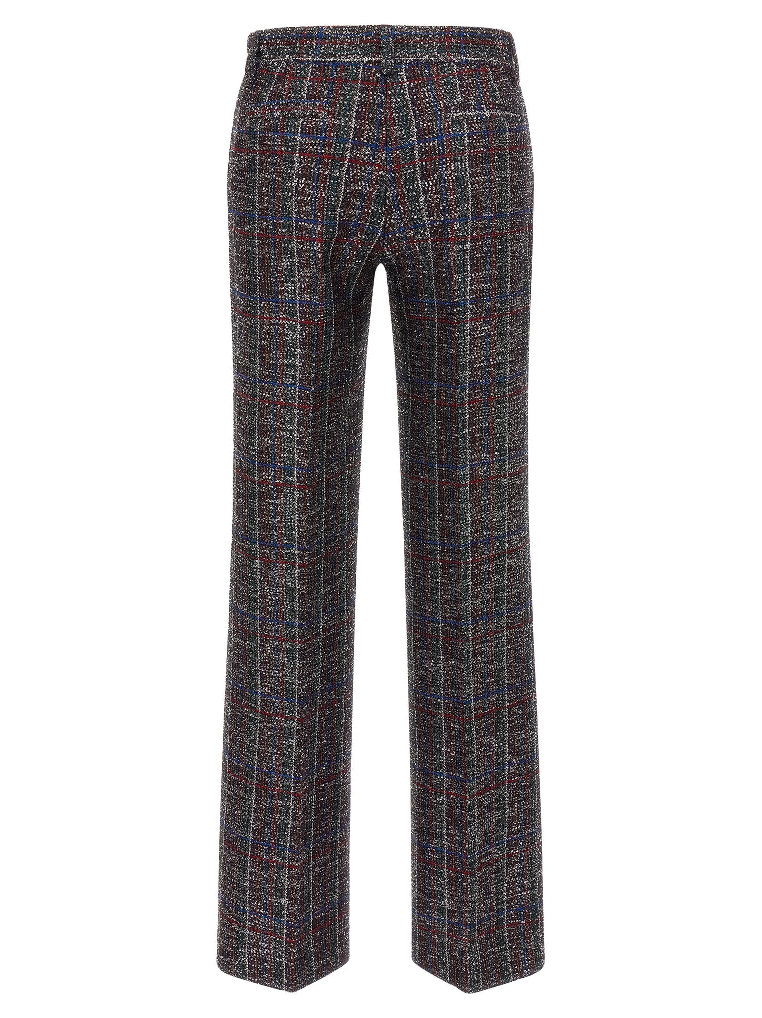 Tartan patterned viscose blend pants with all-over micro sequin application, Lining, Flared leg, Zip and front button closure, Pockets. Size and Fit - true to size fitMade in: Italy