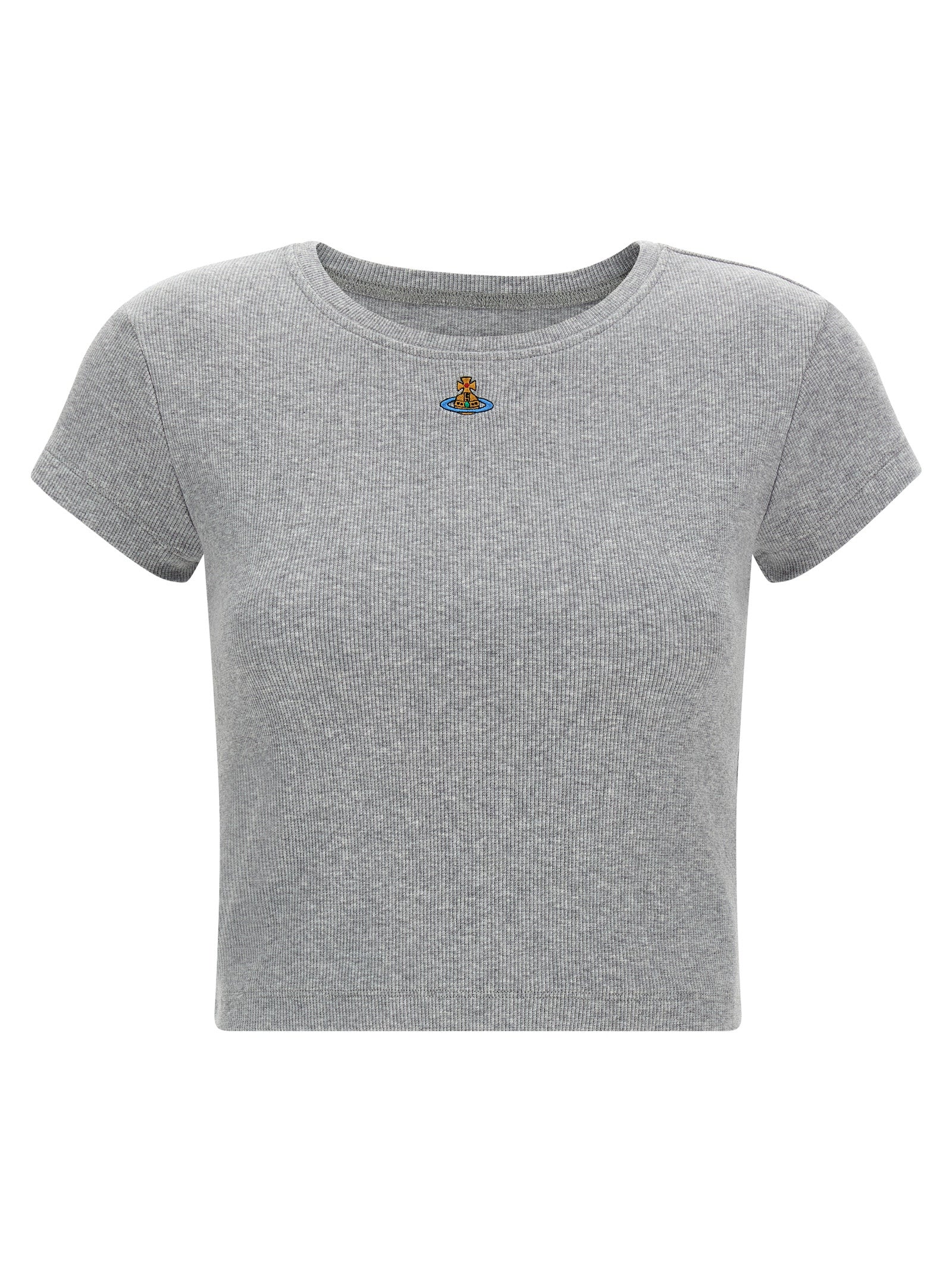 'baby peru' ribbed stretch cotton t-shirt, Crop model, Front orb logo embroidery, Crew neck, Short sleeves. Sustainable: this product is made with organic cotton. Size and Fit - true to size fitMade in: Tunisia