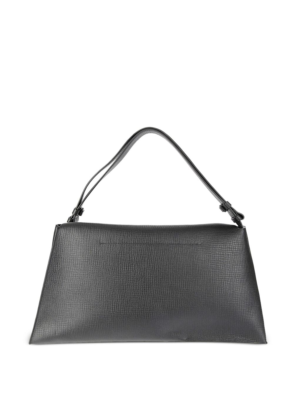 black calf leather foldover top adjustable top handle logo print to the front Shiboru leather shoulder bag
