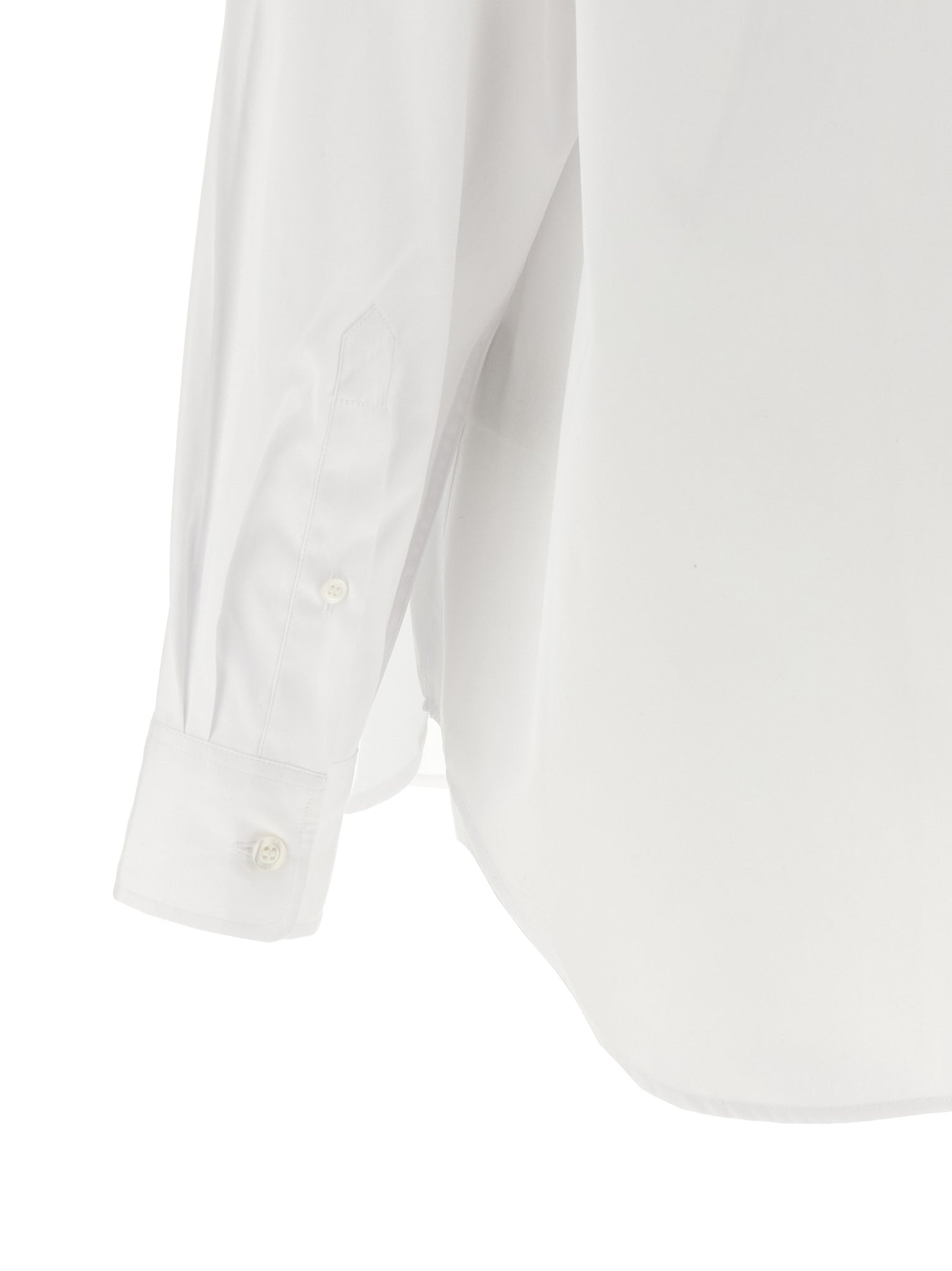 'cheers' button-down shirt in cotton poplin with pockets, Front mother-of-pearl button closure, Long cuffed sleeves, Rounded and asymmetrical hem. Size and Fit - comfort fit - FRENCH sizeMade in: Portugal