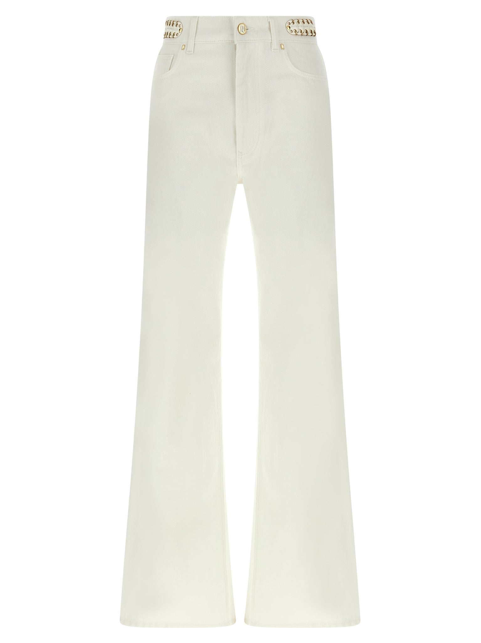 Cotton denim '1969' jeans with enameled metal pads at the waist on the sides, Flared leg, Five pockets, Zip and button closure. Size and Fit - true to size fit