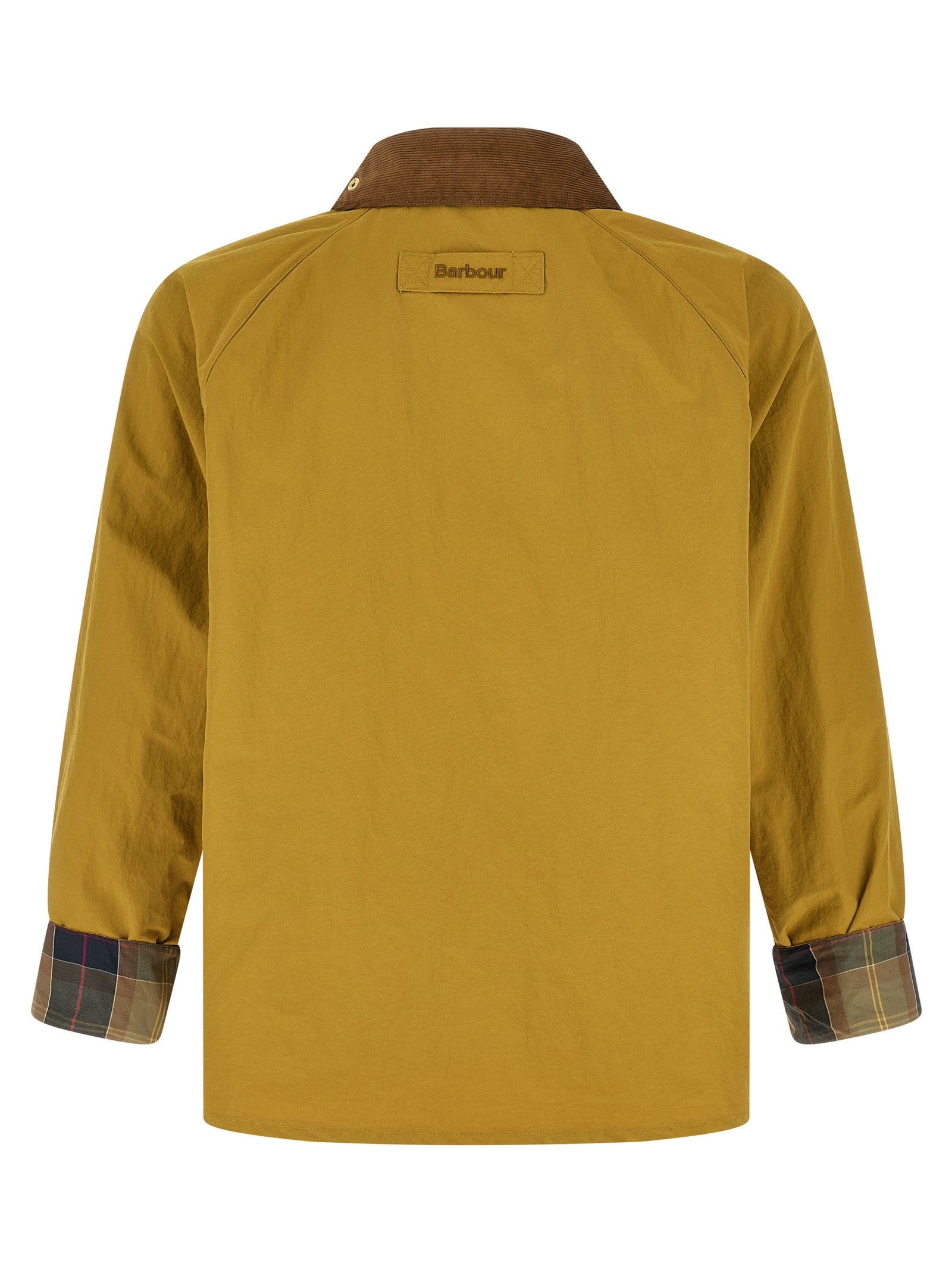 'spey icons' jacket in wrinkled-effect technical fabric with contrast corduroy shirt collar with chinstrap, Removable metal brooch and tartan under collar, Tone-on-tone logo embroidery and front zip and snap button closure, Pockets, Long raglan sleeves with foldable cuffs, Tone-on-tone logo patch on the back, Tartan half lining. Size and Fit - true to size fit