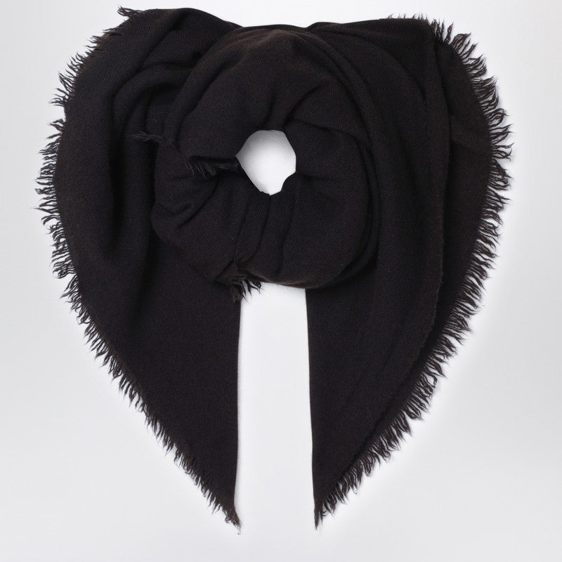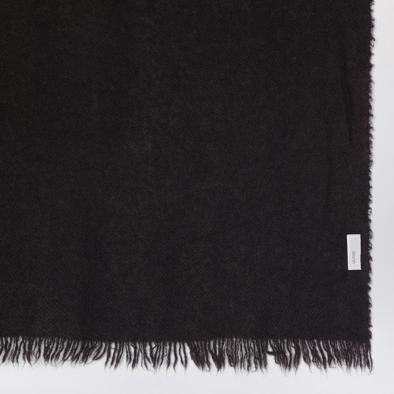 Écharpe en cachemire marron ébène de Destin Surl avec bords effilochés.
