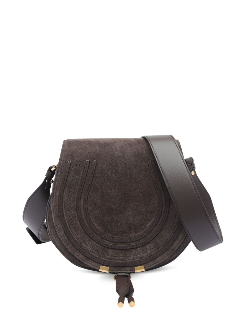 Chloé Marcie saddle bag in suede leather — Dark Brown