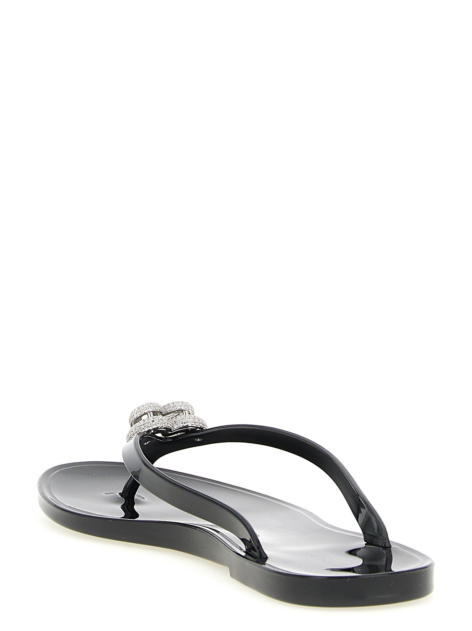 Rubber thong sandals with metal 'double heart' detail with crystals applied on the front. Size and Fit - Eu women