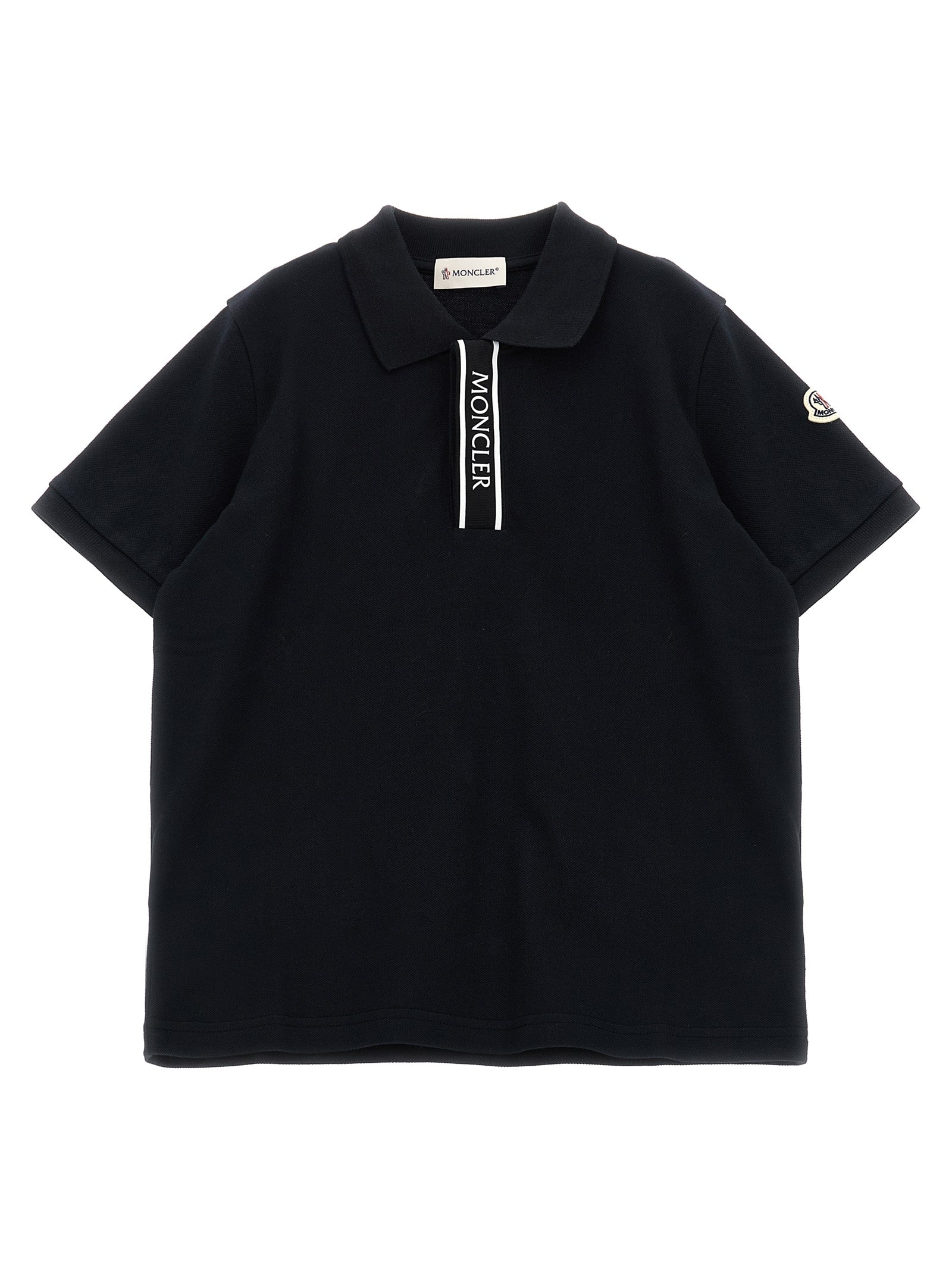 Moncler Enfant Logo Polo Shirt — Black Cotton Piqué