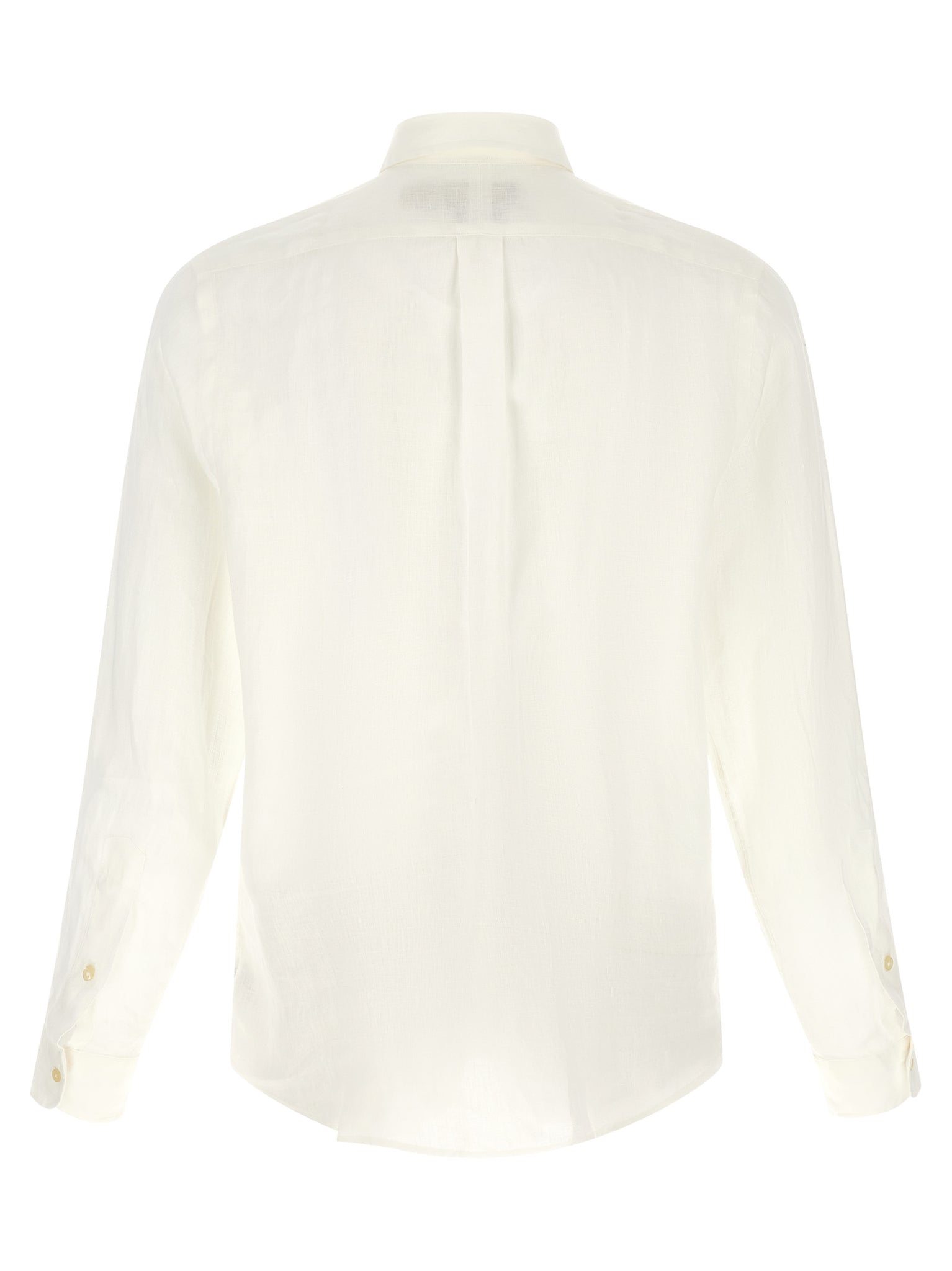 Button-down style linen shirt, 'pony' embroidered logo and front button closure, Long cuffed sleeves, And asymmetrical rounded hem. Size and Fit - custom fitMade in: Indonesia
