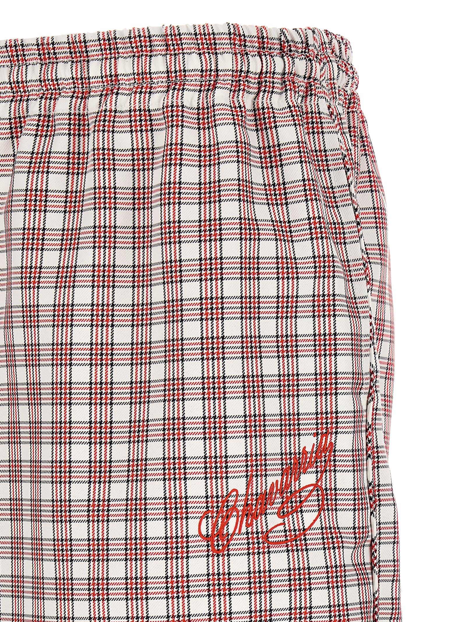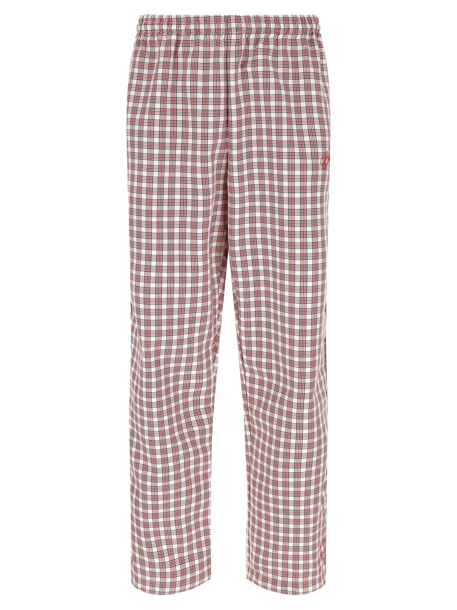 Discover the Willy Chavarria Ruff Rider Pants in red, crafted from heavy-weight checkered fabric that offers structure and durability. These adult trousers feature a front logo embroidery, wide straight legs, an elastic waistband with drawstring, and pockets for everyday convenience. The design provides a true-to-size fit that balances comfort with a tailored silhouette.