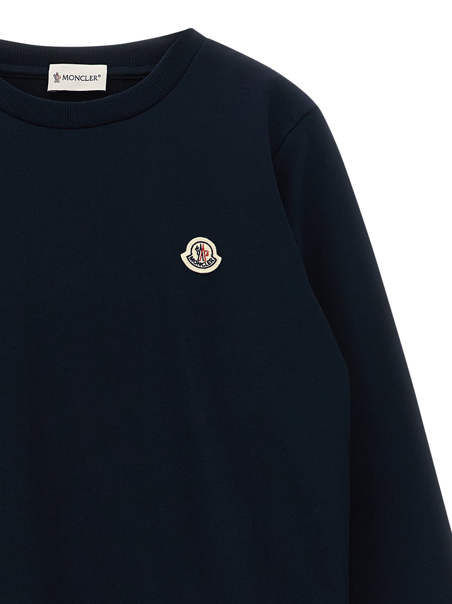 This two-piece stretch cotton jersey set offers a crewneck sweatshirt with a front felt logo patch and long cuffed sleeves, paired with joggers featuring an elastic waistband, trompe l'oeil flap, pockets and ankle cuffs. The tricolor hem adds a signature Moncler Enfant touch while the silhouette remains true to size for easy dressing. Designed for comfort and everyday wear, the set balances recognizable branding with practical details. Ideal for parents seeking a durable, stylish option for casual outings.