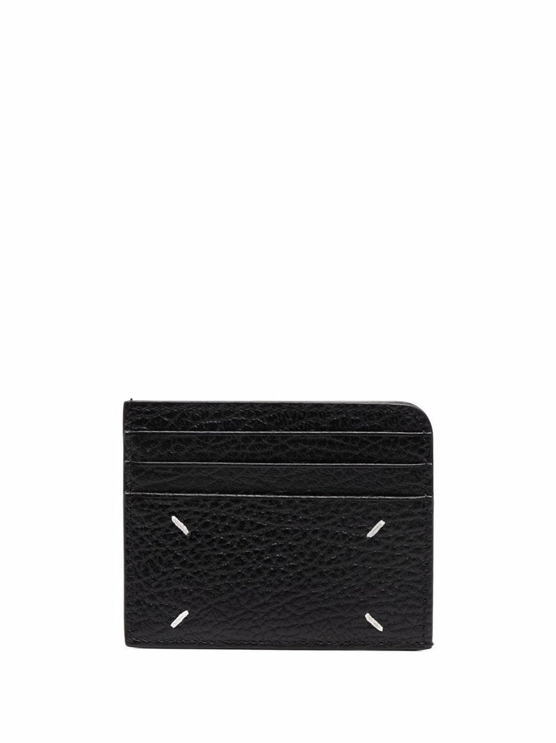 Jet-black leather grained leather wallet from Maison Margiela featuring contrast stitching, card slots and grained texture. Size and Fit - Width 3,94 in / 10 cm Height 3,15 in / 8 cm.