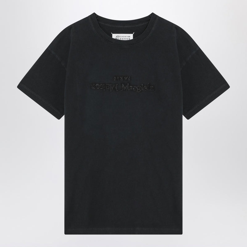Washed Black T‑Shirt with Embroidered Logo — Maison Margiela