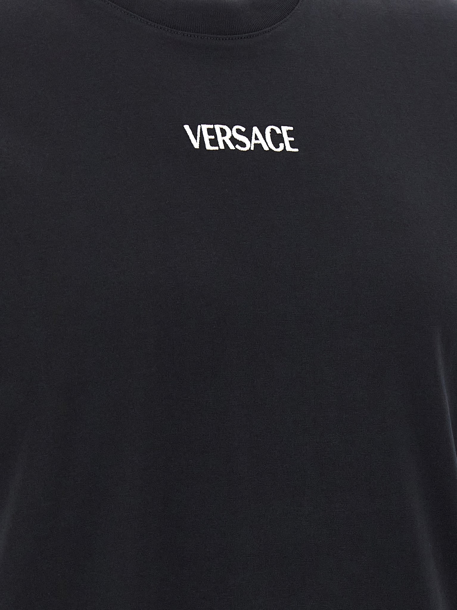 Cotton jersey t-shirt with front 'versace logo' embroidery, Crew neck, Short sleeves. Size and Fit - Slim fit