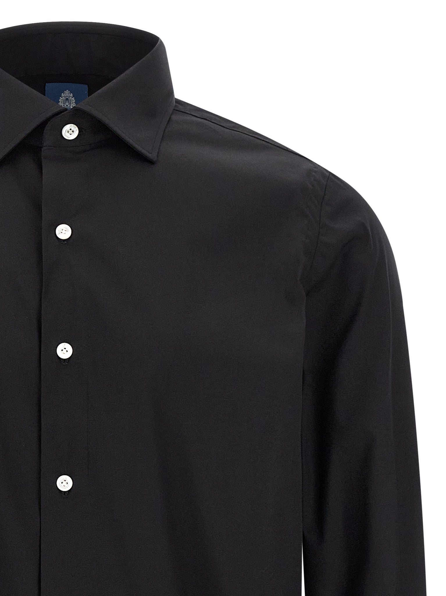 Discover a tailored Napoli cotton shirt from Finamore that combines a true-to-size fit with long cuffed sleeves for a polished silhouette. The button closure and contrast satin logo at the side slits add refined detail while maintaining wearability for fall wardrobes. Designed for adult men in black, this shirt balances classic construction with subtle branding for easy pairing and daily comfort.