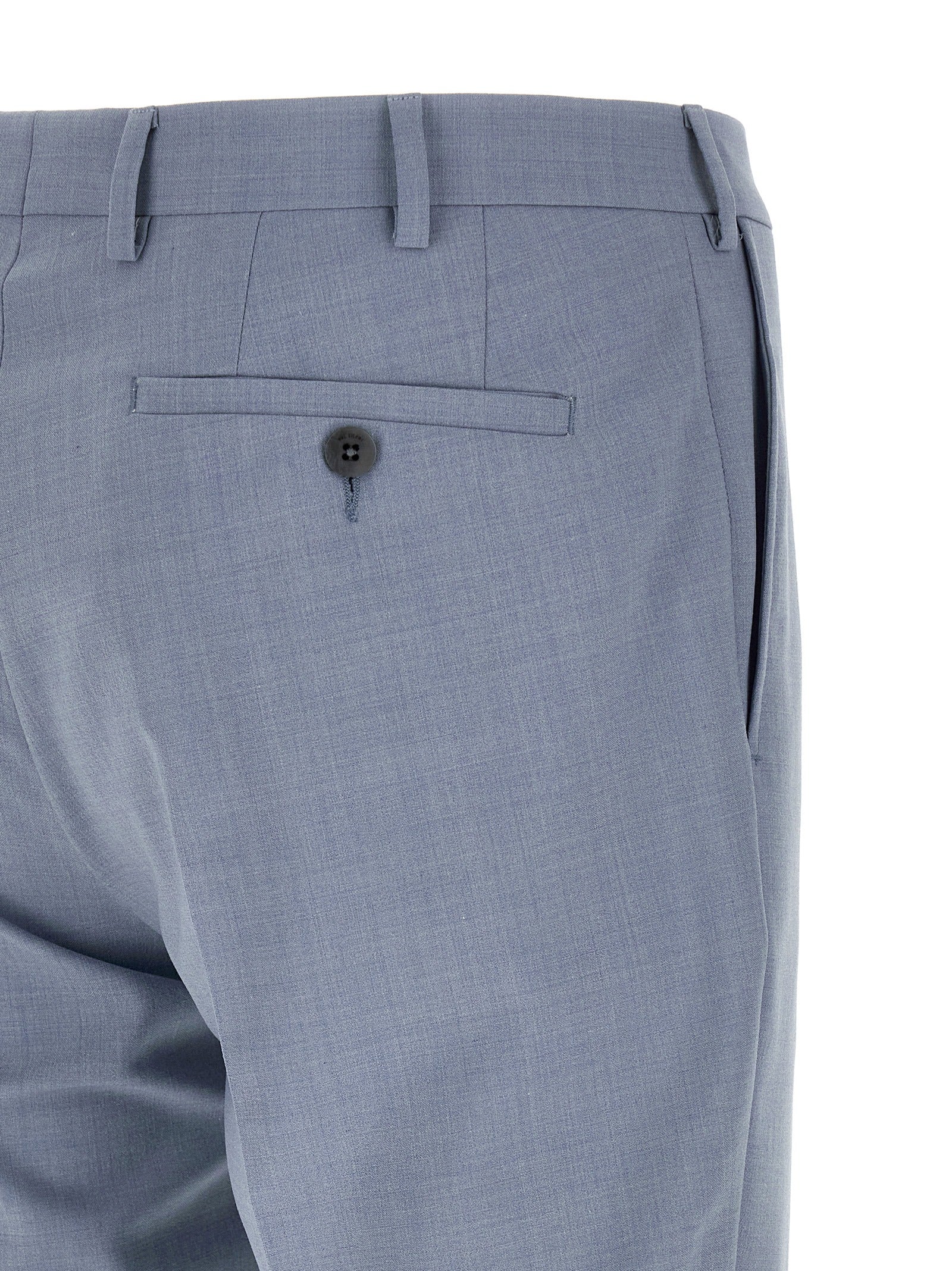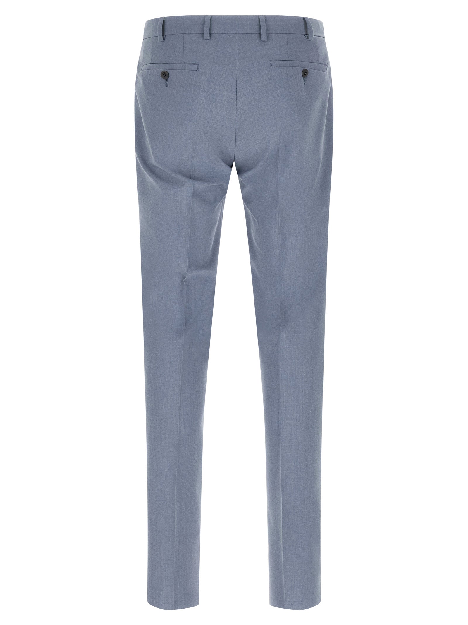 'Lord' dress in wool blend mélange consisting of single-breasted blazer with front button closure, mirror lapels with removable metal brooch, chest pocket, flap pockets, cupro lining, two inner pockets, structured shoulder strap, cuffs with opening buttonholes, back slits and trousers with stretched pleat, front pockets 'americane', back welt pockets, front zip and button closure, viscose lining. Size and Fit - true to size fit - DROP 7