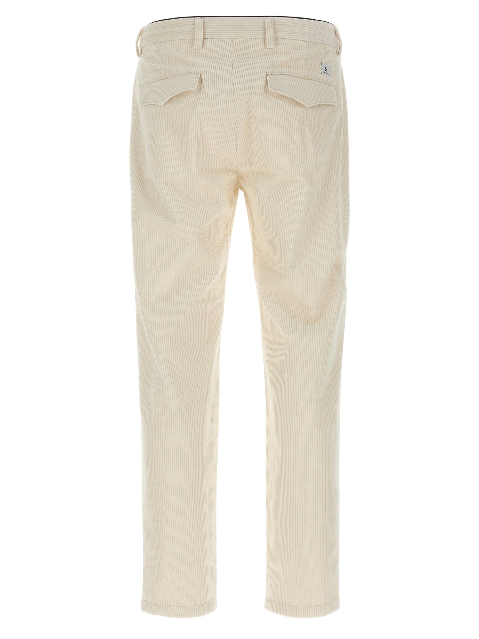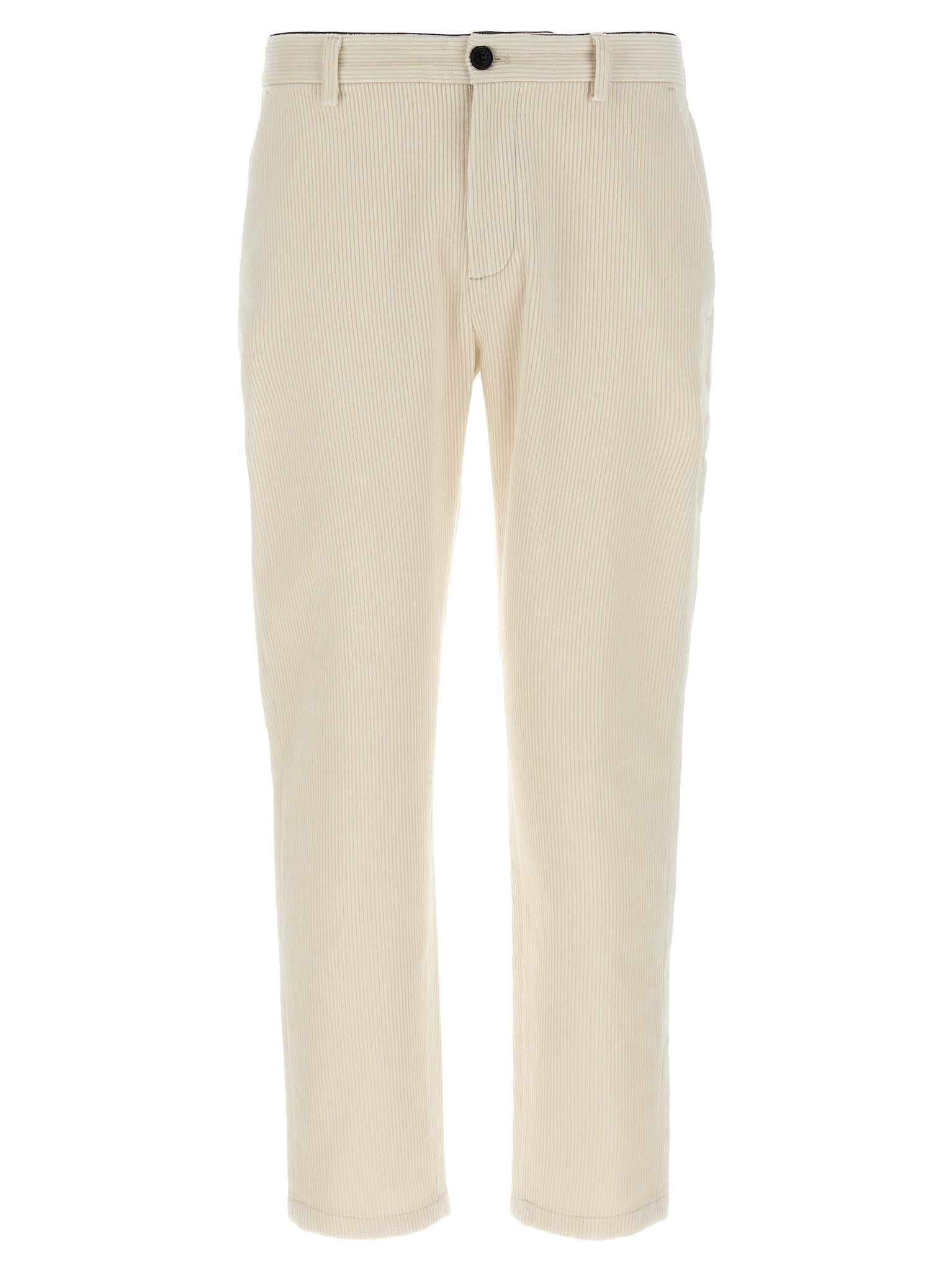 'Prince' corduroy trousers, slightly elasticized, chino, button and zip closure, pockets. Size and Fit - Slim fit