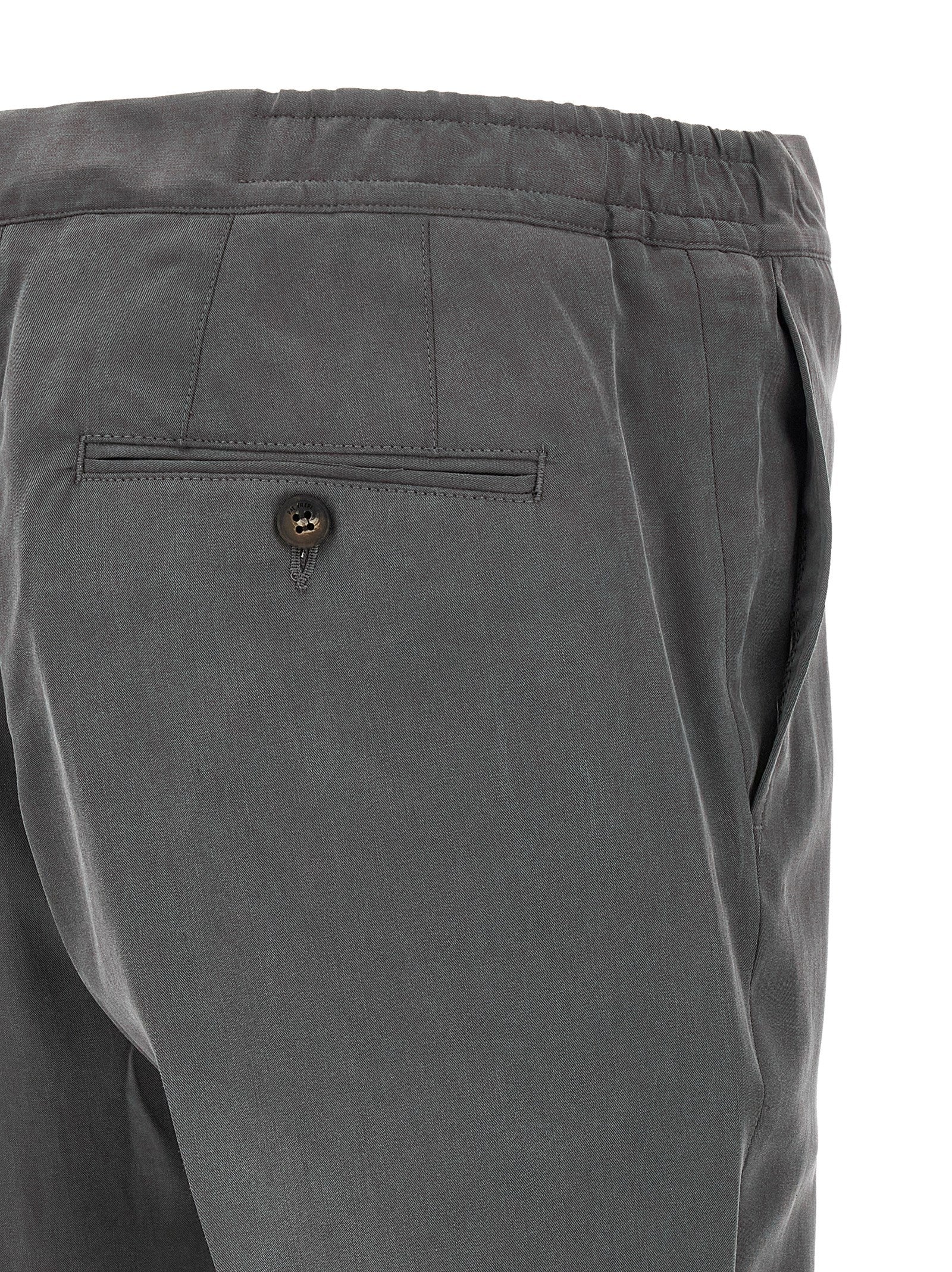 Discover tailored comfort with the Pal Zileri Effortless Capsule Pants in gray, featuring a straight leg and a stretched pleat for a clean silhouette. The front zip with button closure and a back elastic with drawstring provide adjustable support while front American pockets and back welt pockets keep essentials secure. Made from lyocell for a soft, breathable feel, these trousers offer a true-to-size fit ideal for daily wear.