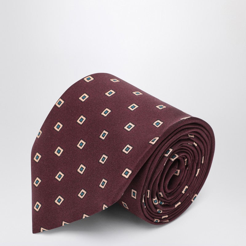 Saint Laurent Bordeaux Silk Tie — Printed Elegance