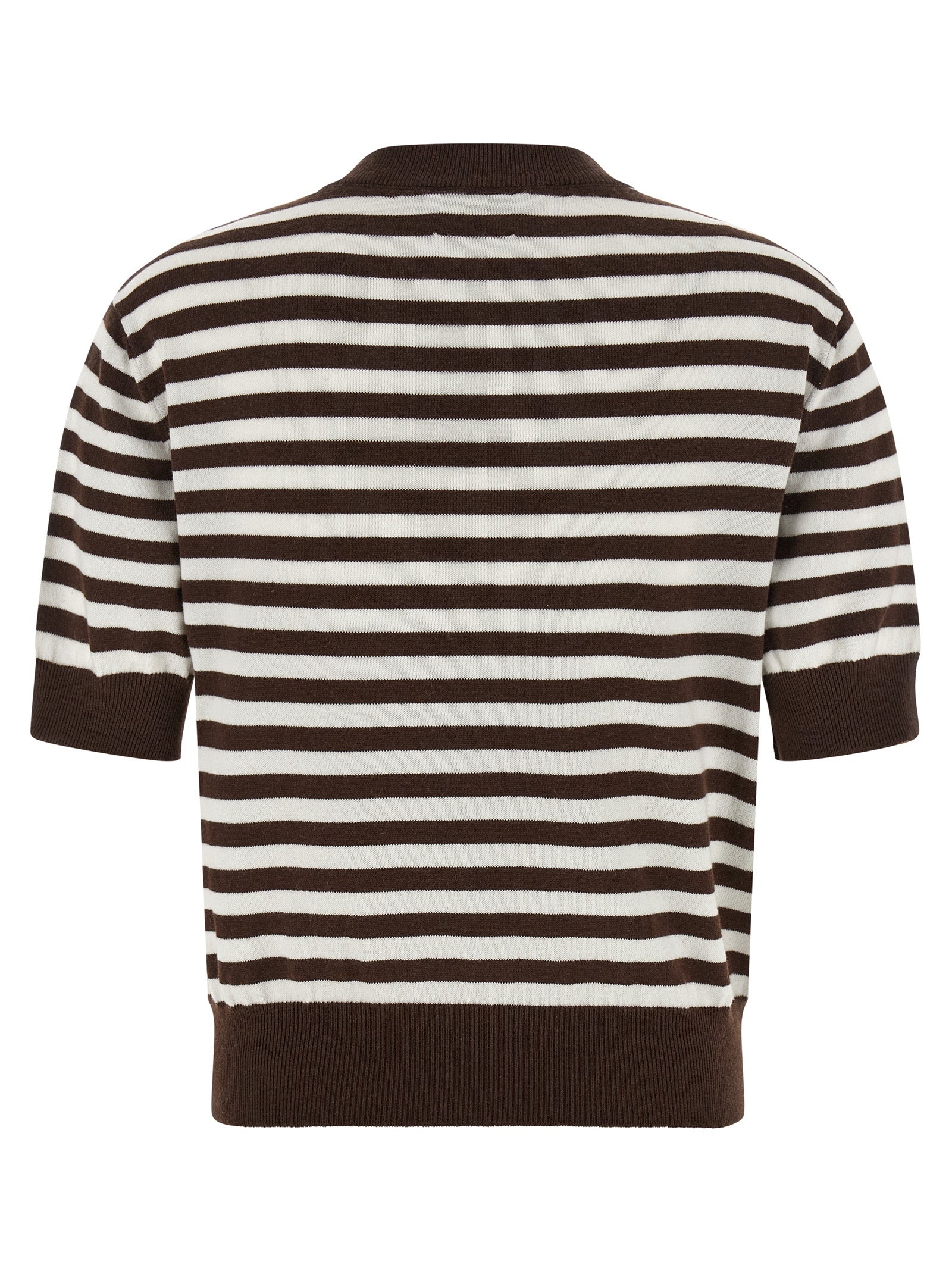 Discover a striped crewneck that pairs the softness of cotton with cashmere for everyday comfort and subtle warmth. Short cuffed sleeves and a banded hem create a clean silhouette that fits true to size and layers easily under jackets. Designed for adult women, the brown tone adds versatile polish to casual and work wardrobes.