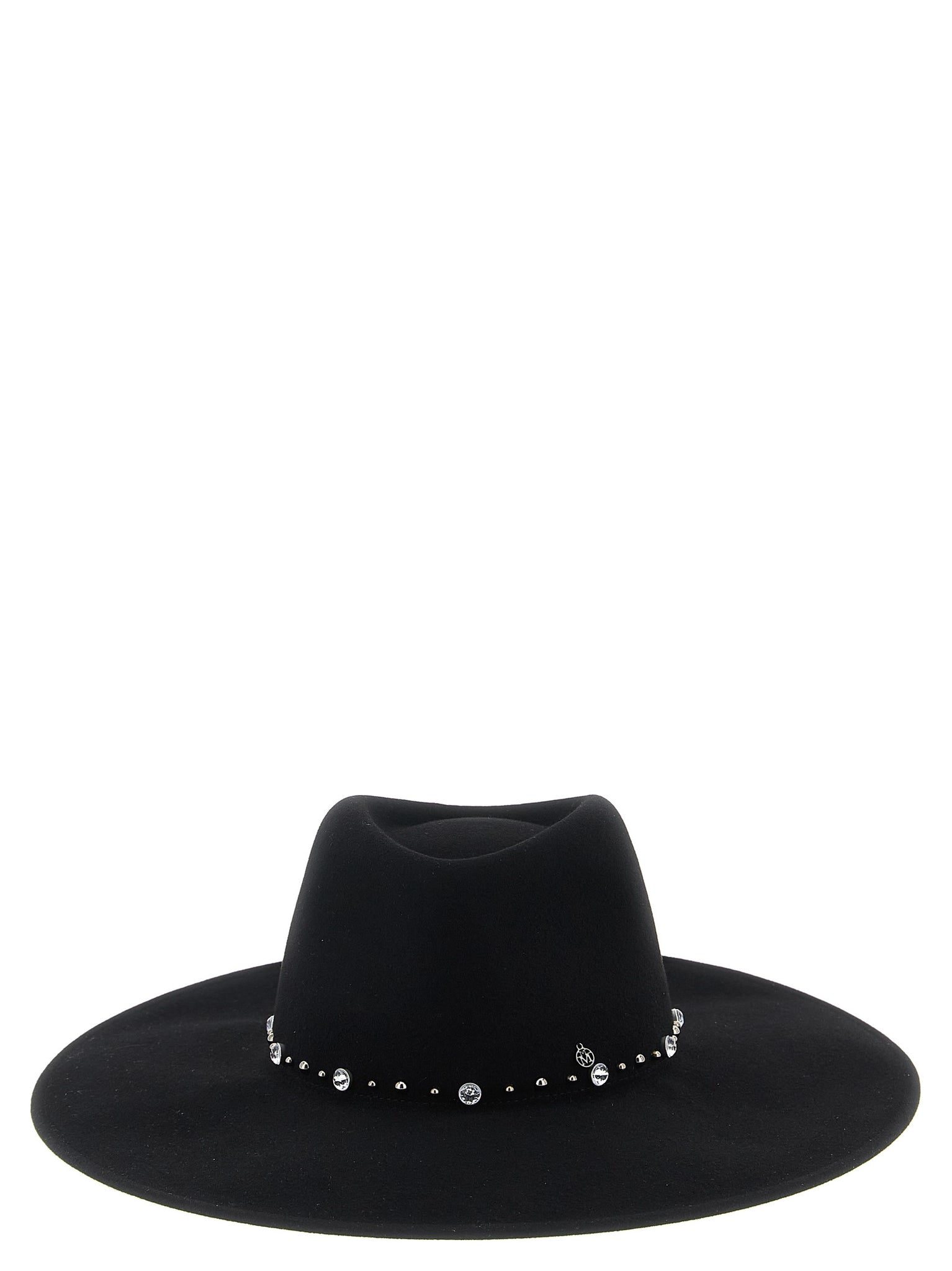 'Roy' wide-brimmed wool hat with stud and crystal details. Size and Fit - True to size fit