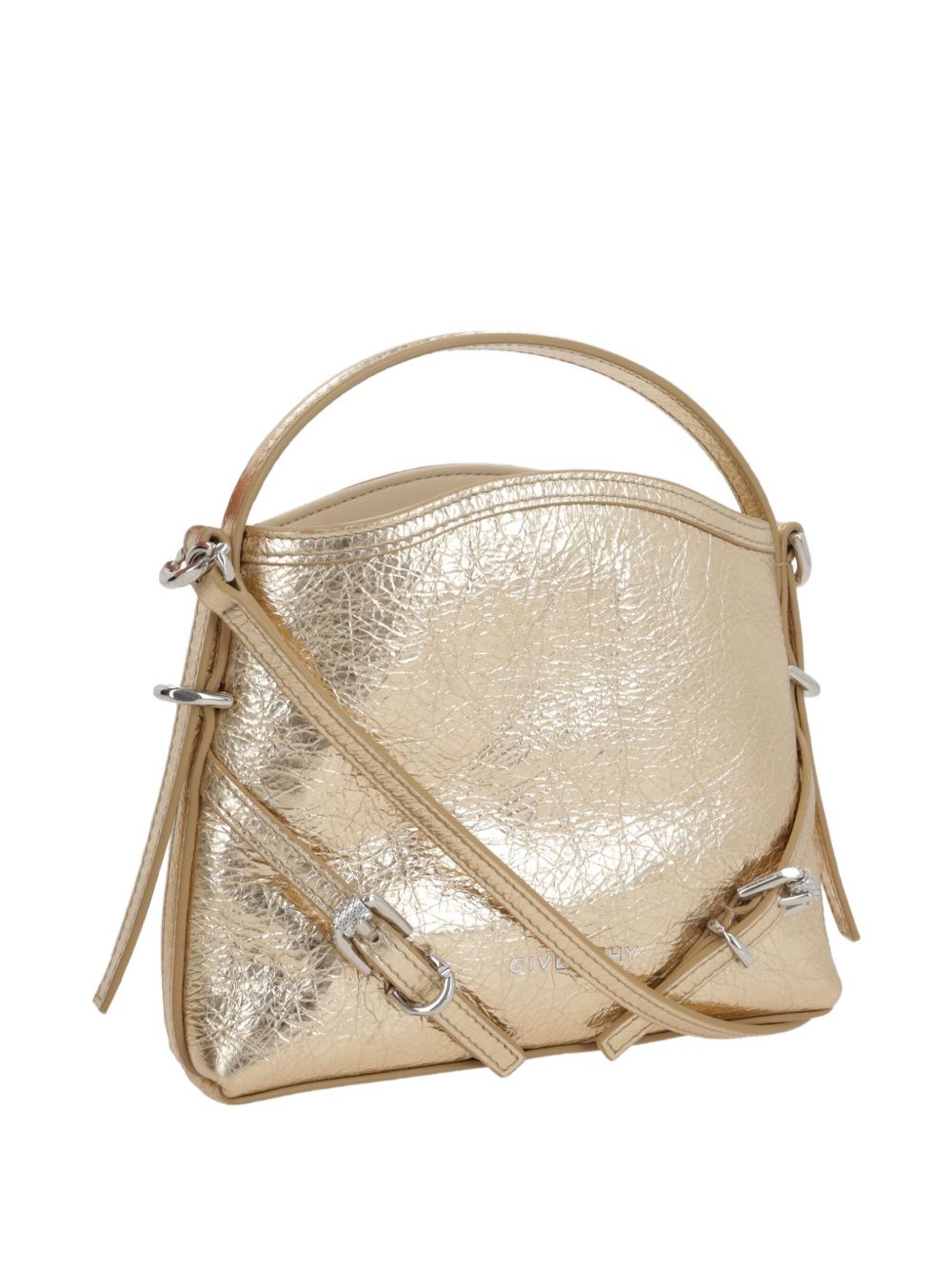 gold-tone single top handle detachable shoulder strap metallic sheen decorative buckle detail Voyou nano leather shoulder bag Size and Fit - Width 17.5 cm, Height 14 cm, Depth 4 cm, Handle, 25.0 cm, Shoulder strap 100 cm