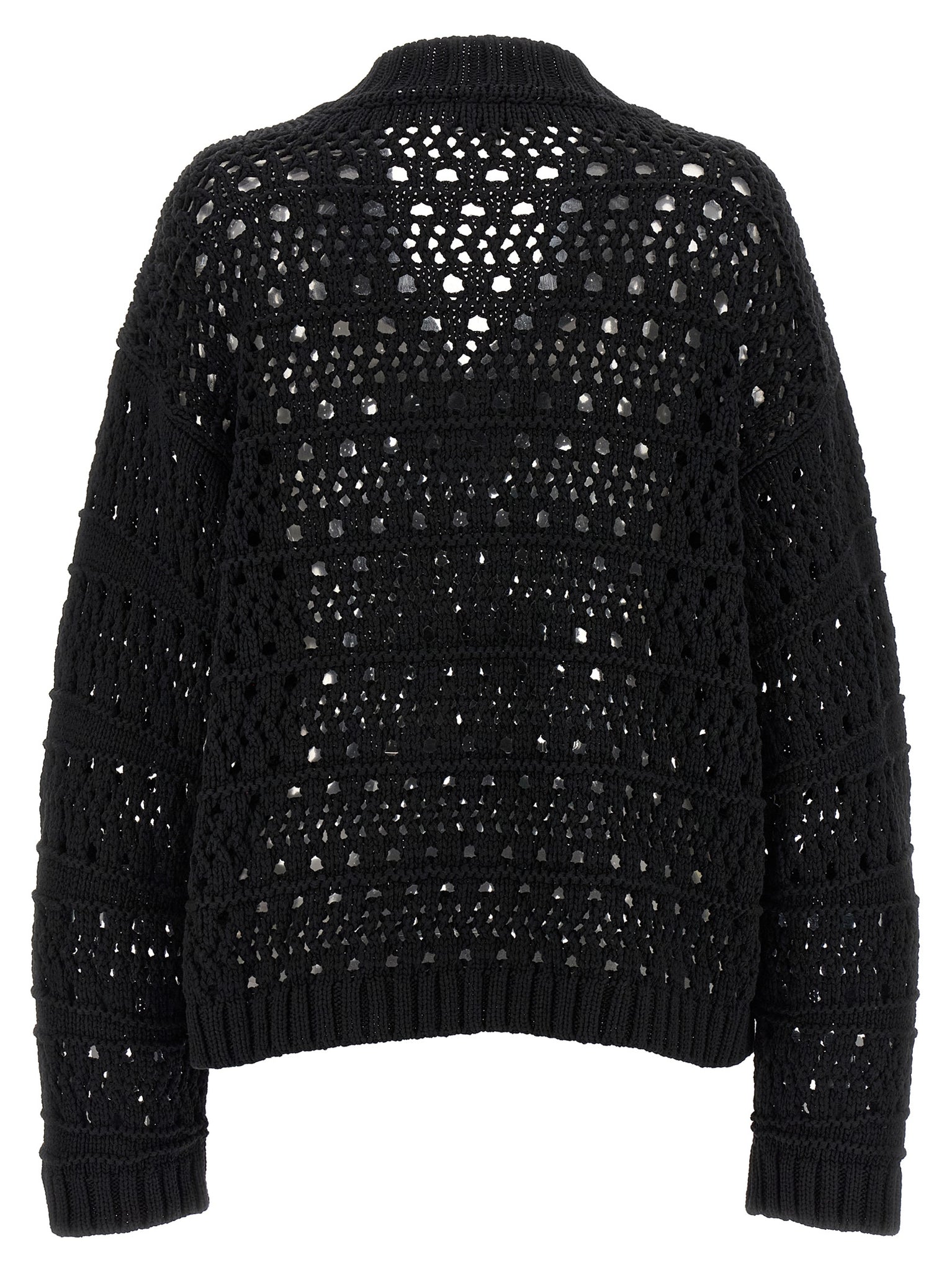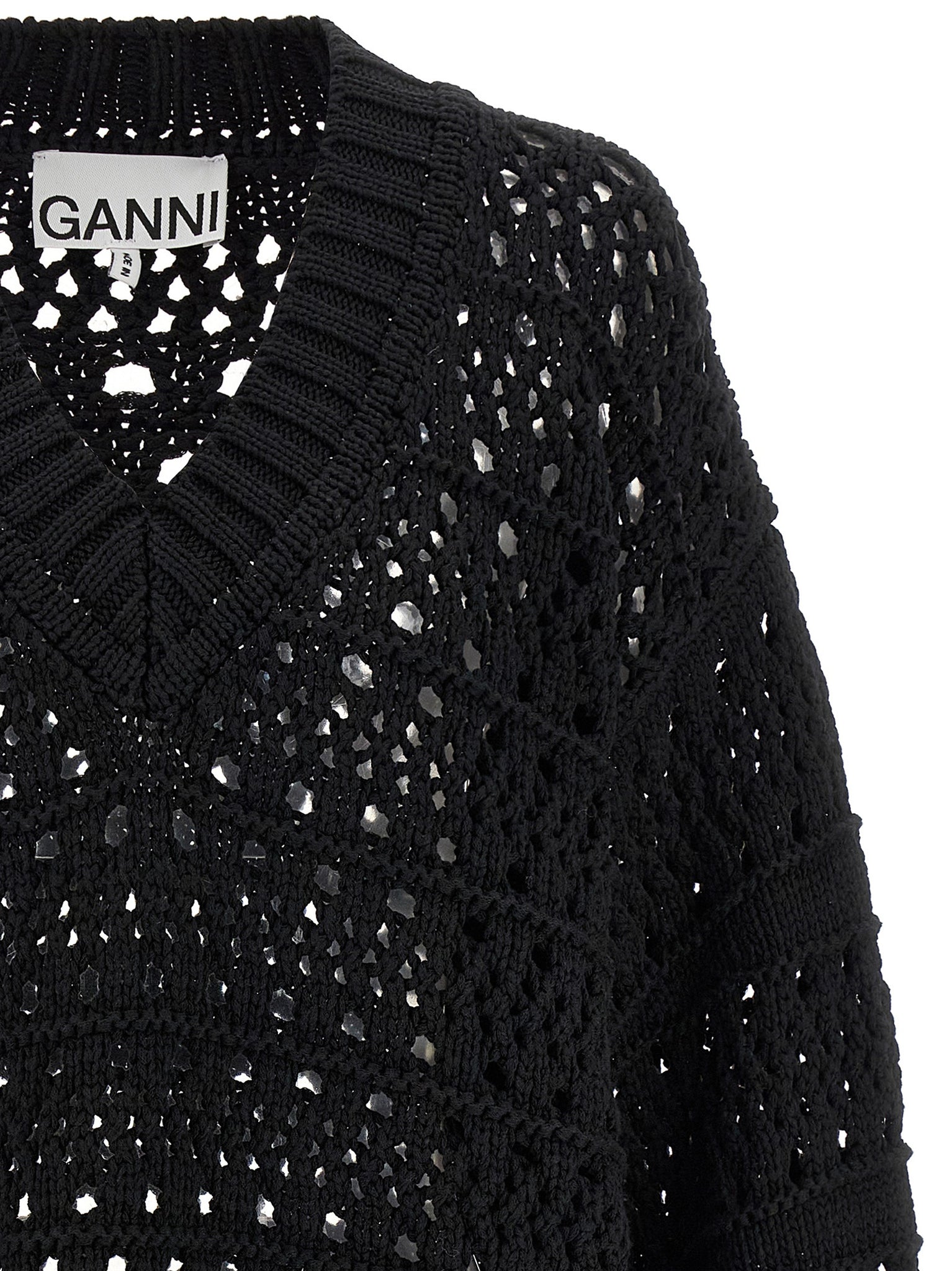 Ganni Black Crochet V‑neck Sweater — Knitwear (Oversized)