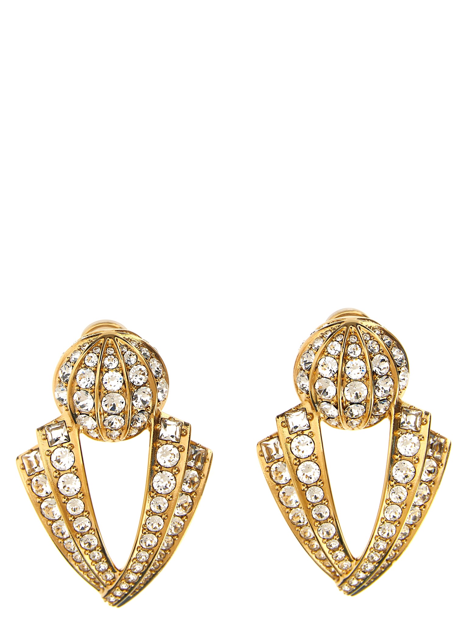 'poetique des gouttes' earrings in gold metal and crystals swarovski® all-over, Clip-on closure. Item cannot be returned. Size and Fit - W 4 x H 6 cmMade in: Italy