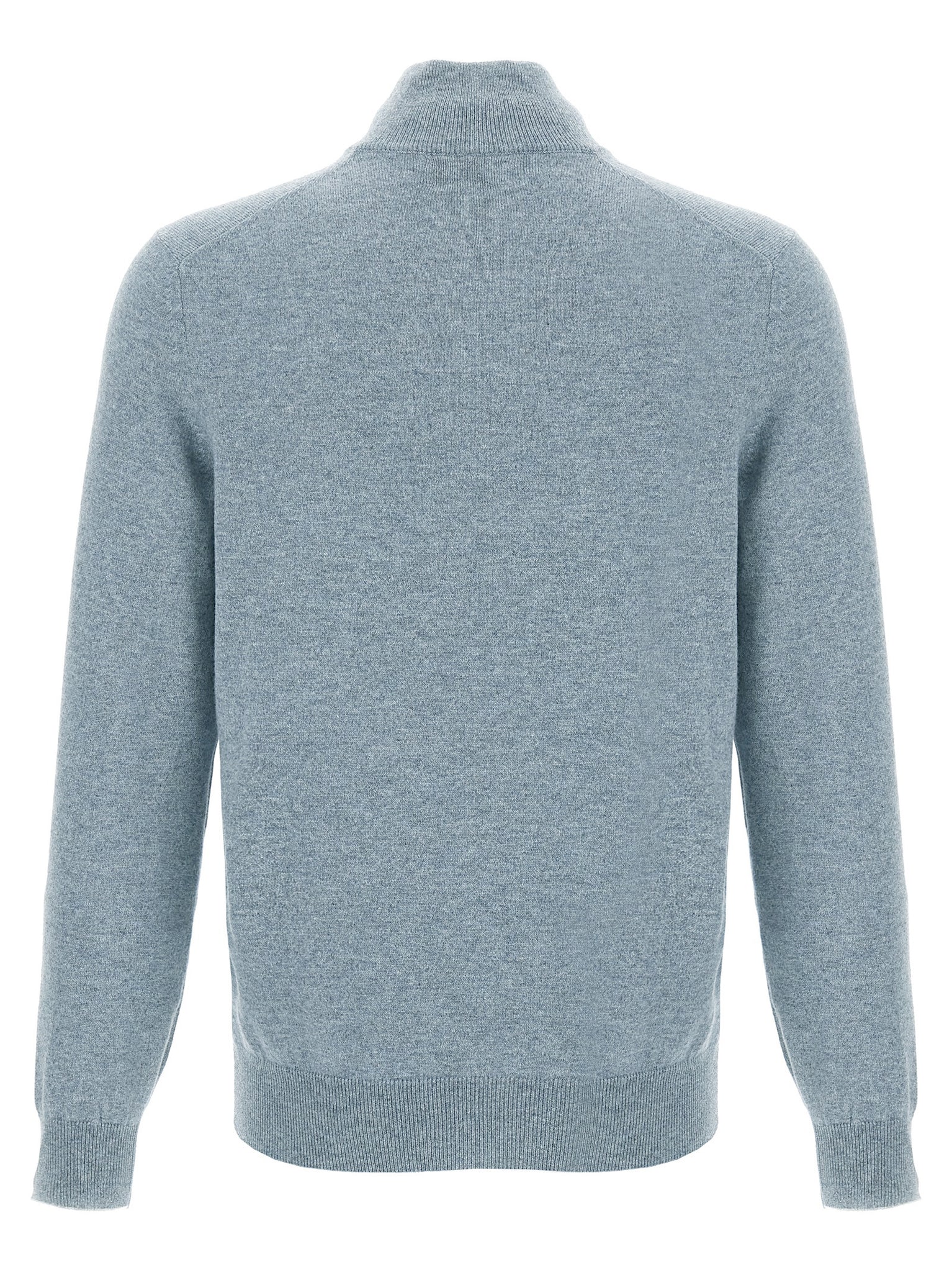 Cashmere sweater with contrast details, high neck, front half-zip, long cuffed sleeves. Size and Fit - true to size fit