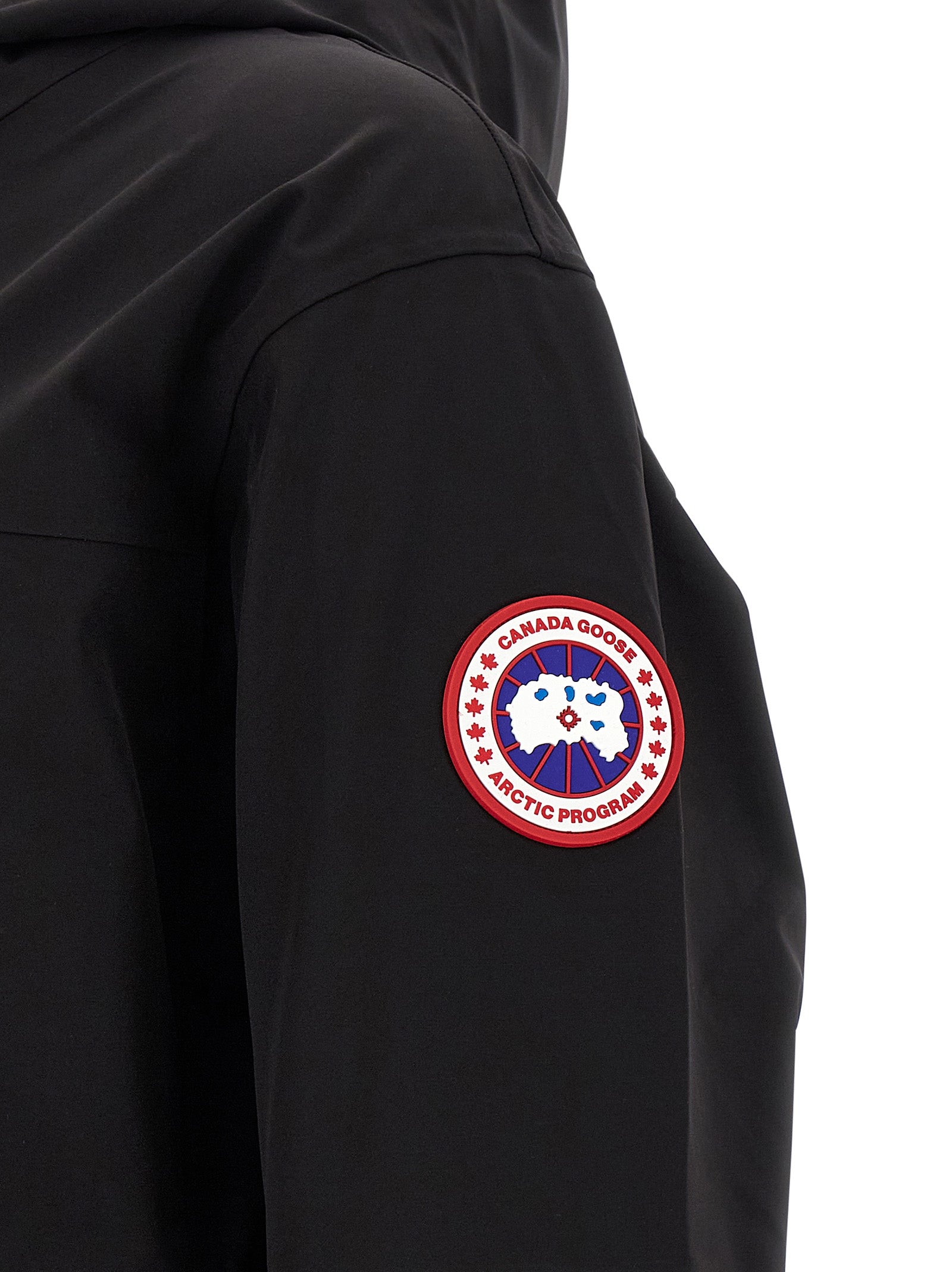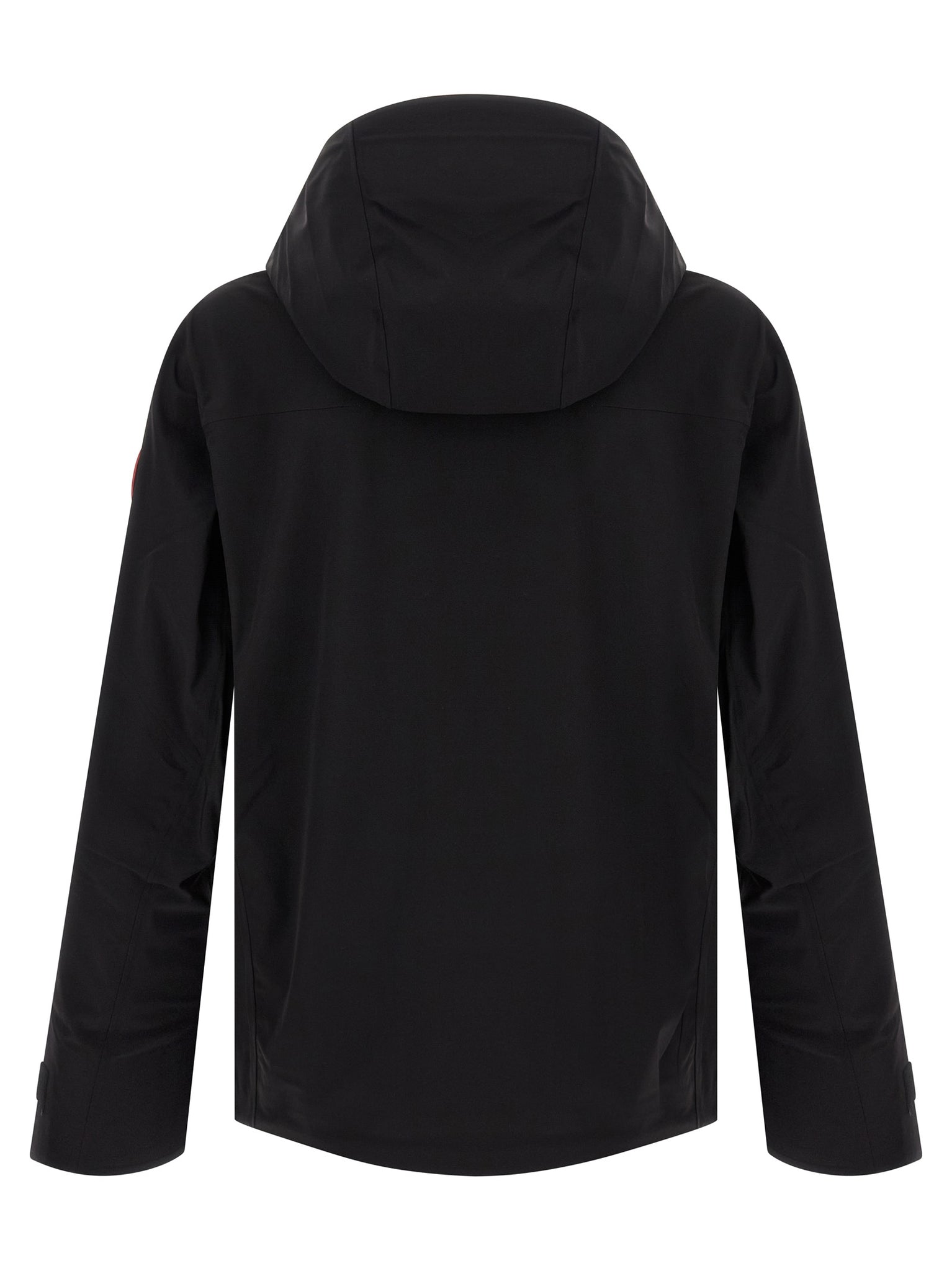 'rupert' waterproof three-layer flexible fabric rain jacket with fully heat-sealed seams, Adjustable hood, Ventilation under the arms, Front zip and snap button closure, Pockets, Long sleeves with silicone logo patch, Drawstring at the hem, Unlined. Size and Fit - true to size fit