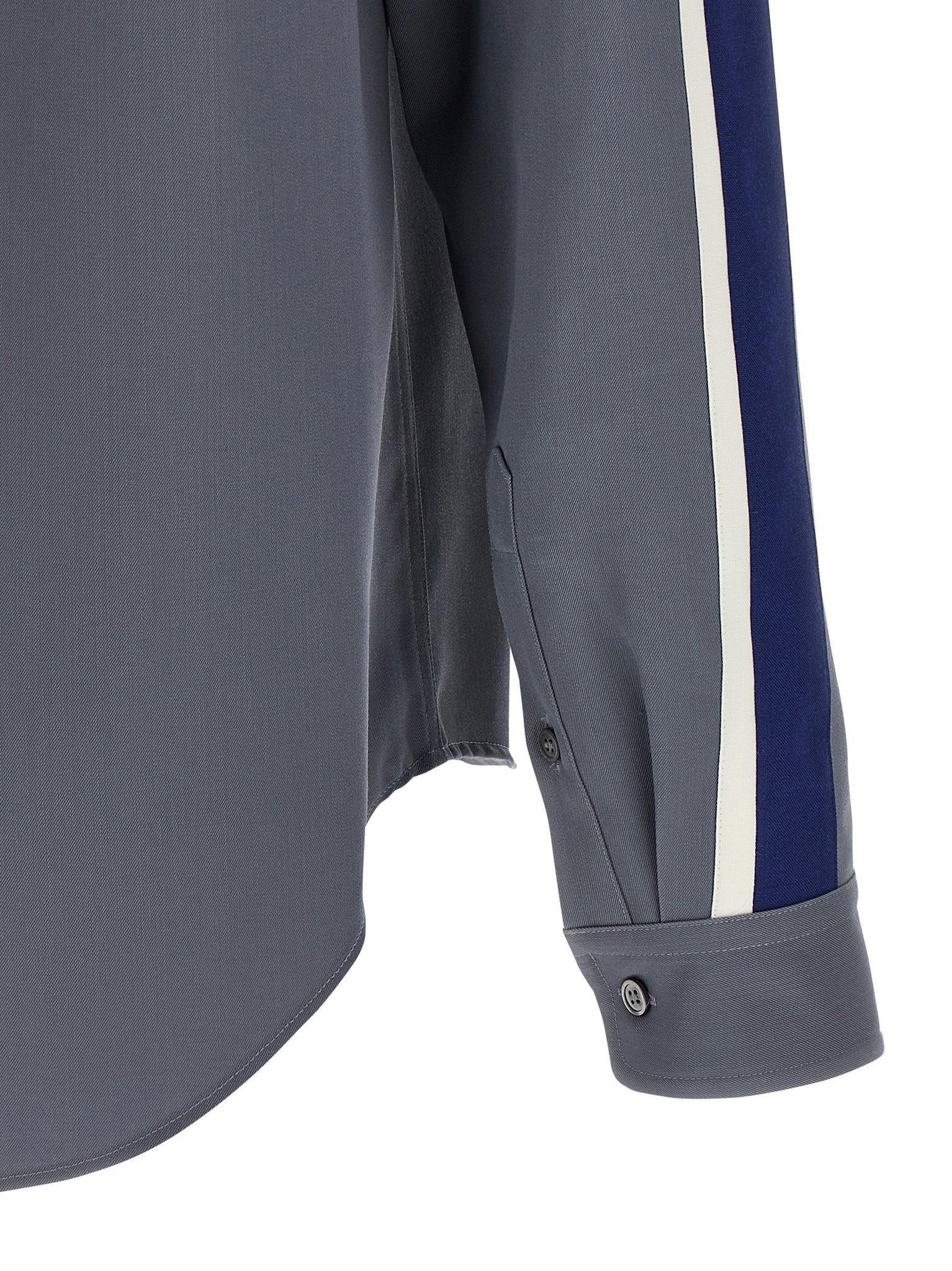 Virgin wool shirt with contrasting details on the sleeves, Back logo patch, Breast pocket, Front button closure, Long cuffed sleeves. Size and Fit - true to size fit