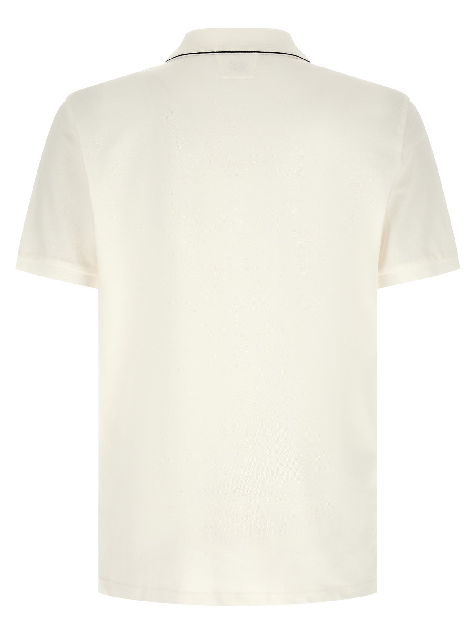 Stretch cotton piquet polo shirt with front logo patch, Collar with contrasting detail and buttons, Short sleeves with cuffs, Side slits on an asymmetrical hem. Size and Fit - true to size fitMade in: China