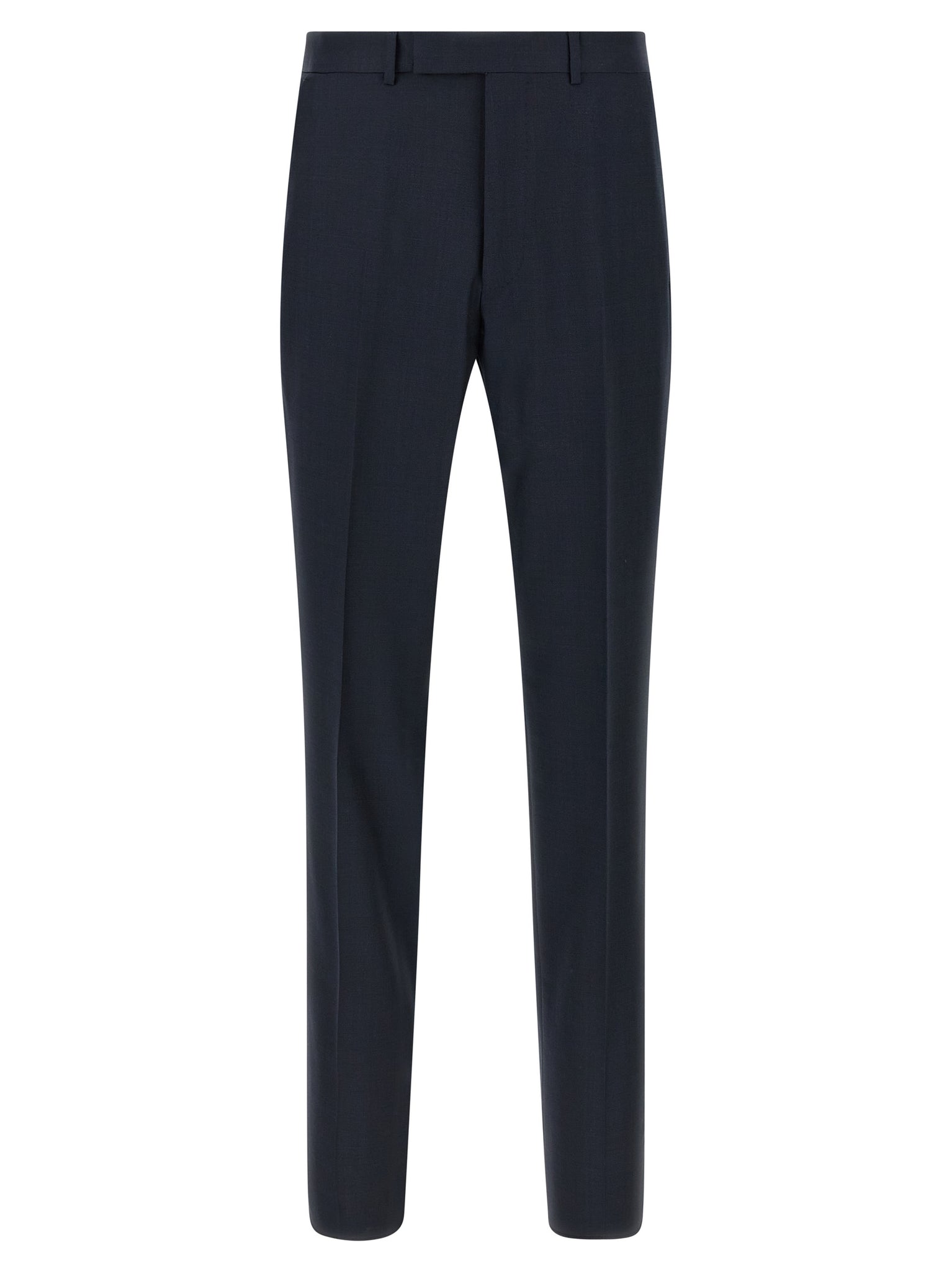 Wool dress consisting of single-breasted blazer with button closure, Mirror lapels, Chest pocket, Flap pockets, Viscose lining, Three inner pockets, Structured shoulder strap, Cuffs with opening buttonholes, Back slits and trousers with pressed pleat, Front 'americane' pockets, Back welt pockets, Front hook and button zip closure, Viscose lining. Size and Fit - True to size fit DROP 7
