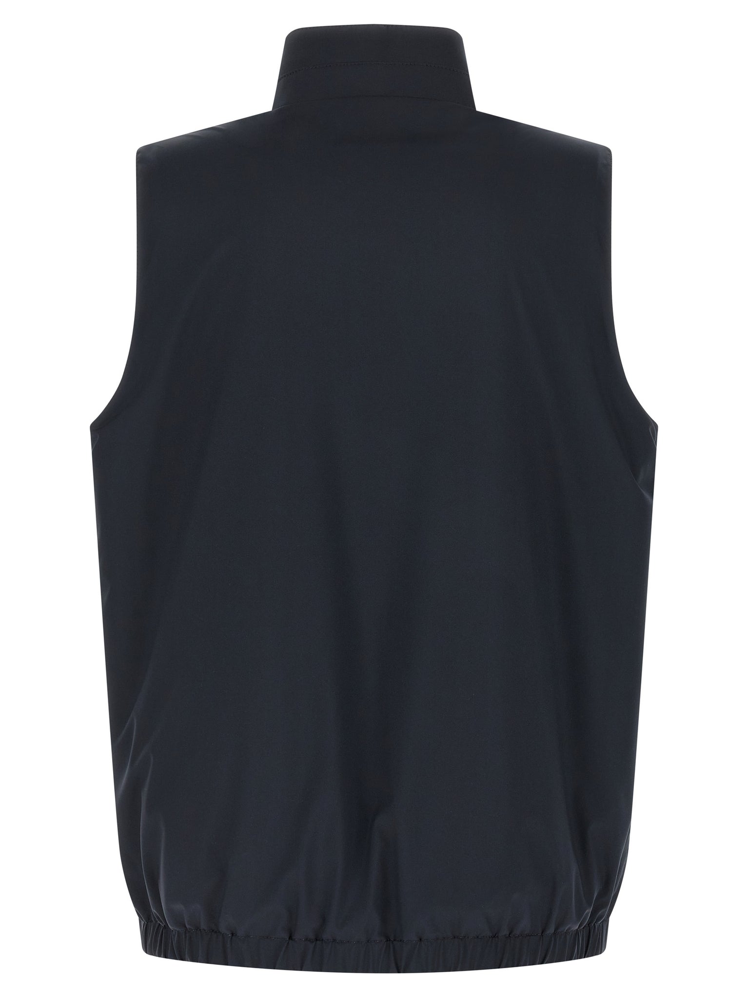 Double-sided vest in nylon and cotton jersey, High neck, Front zip closure, Enameled metal logo puller, Side pockets, Elastic hem. Size and Fit - True to size fit
