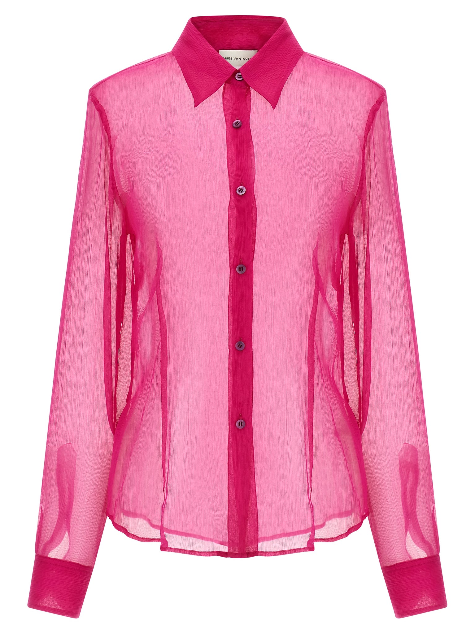 Dries Van Noten Cloudy Shirt — Fuchsia Silk Shirt